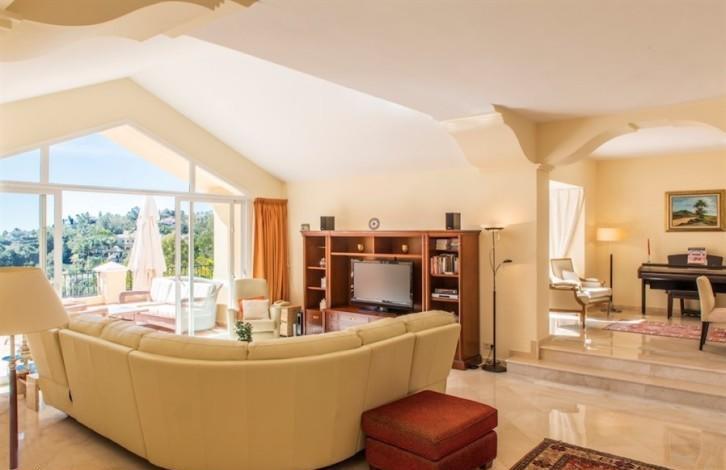 Вилла выходит на юг и предлагает красивые виды на море и гольф почти из всех комнат. Вилла расположена на первой линии от гольф-клуба и находится в превосходном состоянии. Она очень просторная, светлая и стильная.На уровне входа вы найдете гостиную, столовую, просторную террасу, кухню, 2 спальни, 1 ванную и гостевой туалет.На верхнем этаже расположена хозяйская спальня с ванной и гардеробной и еще одна спальня с ванной.В гараже может поместиться до 4 машин. На этом уровле также есть 2 спальни с ванными комнатами и терраса с баром и выходом к крытому бассейну с подогревом. Вилла имеет сигнализацию, отопление, независимые кондиционеры на каждом этаже, москитные сетки и много других полезных вещей.