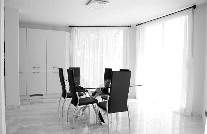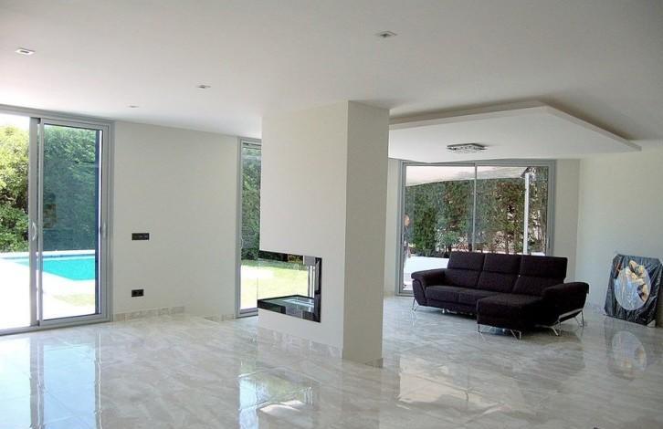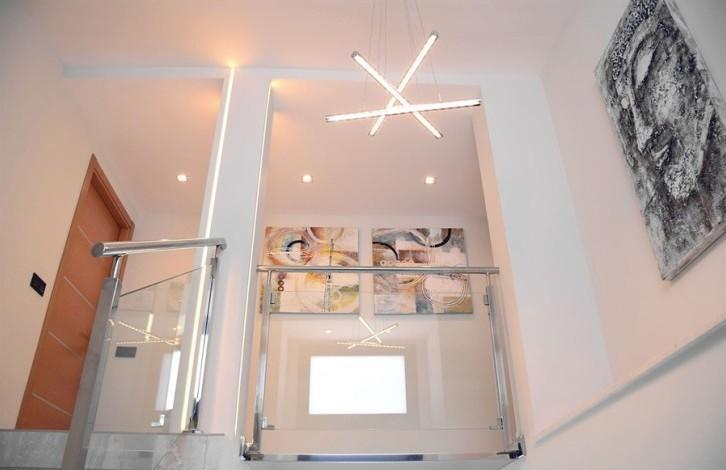 На первом этаже расположена гостиная с открытой кухней и столовой, гостевой туалет и прачечная, а также выход на террасу.На втором этаже расположены 3 спальни с ванными комнатами и терраса.