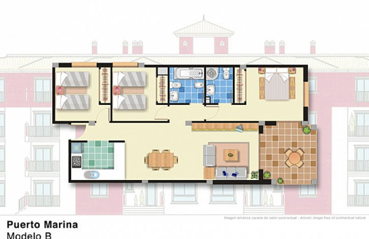 Квартира в комплексе Пуэрто-Марина, Лос-Алькасарес. Салон, 3 спальни, 2 ванные комнаты, кухня, терраса 10 м2, парковочное место. Элитная урбанизация, архитектура которой сочетает в себе традиции Средиземноморья с модерном. Бассейны, экзотические растения, просторный паркинг, функциональная планировка. До пляжа можно дойти за 5 минут.Комплекс Пуэрто-Марина расположен на берегу соленой лагуны Мар-Менор (Малое Море), в небольшом городке Лос-Алькасаресе. Кристально-чистая воа, псчаный пляж, яхт-клуб, прогулочная набережная – идеальное место для отдыха в любое время года. Это место находится в провинции Мурсия и славится самым большим кличеством солнечных дней в году и самым умеренным во всей Испании климатом. Именно поэтому это побережье носит название Costa Calida – ‘Теплый берег’. От Средиземного моря лагуна отделена песчаной косой длиной 22 км и шириной 100—1200 м. При площади 170 км^2, береговой линии 70 км, кристально чистой воде глубиной не более 7 м её называют «самым большим плавательным бассейном в мире». Это идеальное место для любителей водных видов спорта.