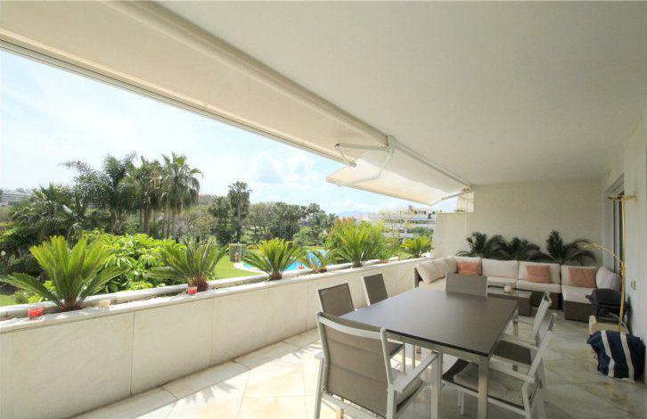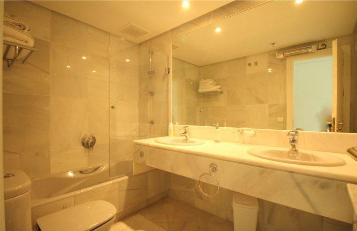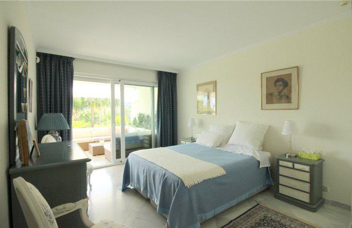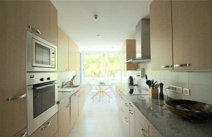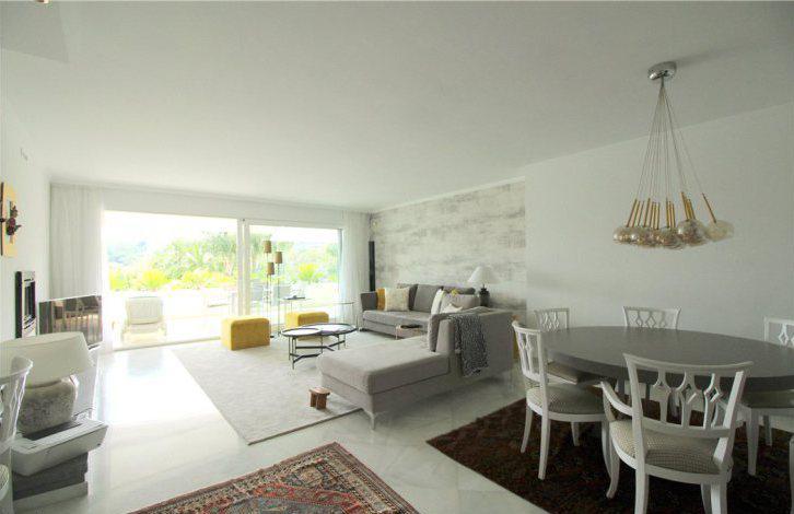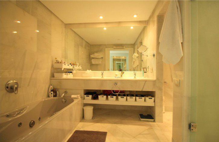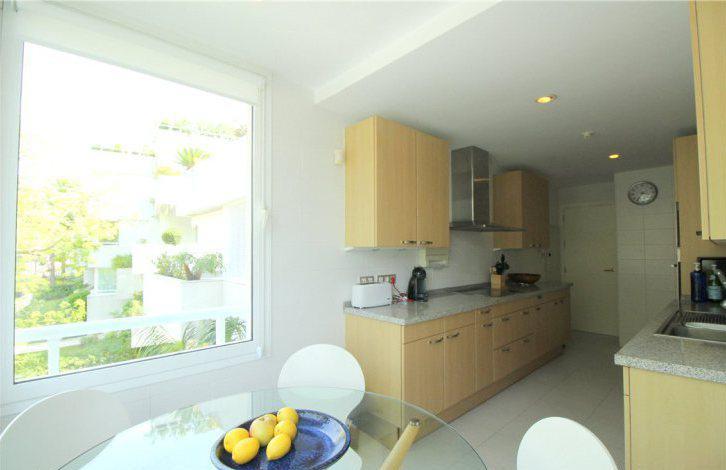 В просторной гостиной есть каминная зона и выход на крытую террасу, с которой открываются прекрасные виды на сад и поле для гольфа. Напротив гостиной находится кухня с зоной для завтраков. Все спальни в апартаментах оборудованы собственными ванными комнатами, отделанные мрамором. Две спальни имеют выход на общий балкон с видом на горы Ла Конча.