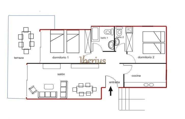 Из гостиной и одной из спален есть выход на террасу с видом на море. Квартира оборудована газовой колонкой. IBER-PD-358