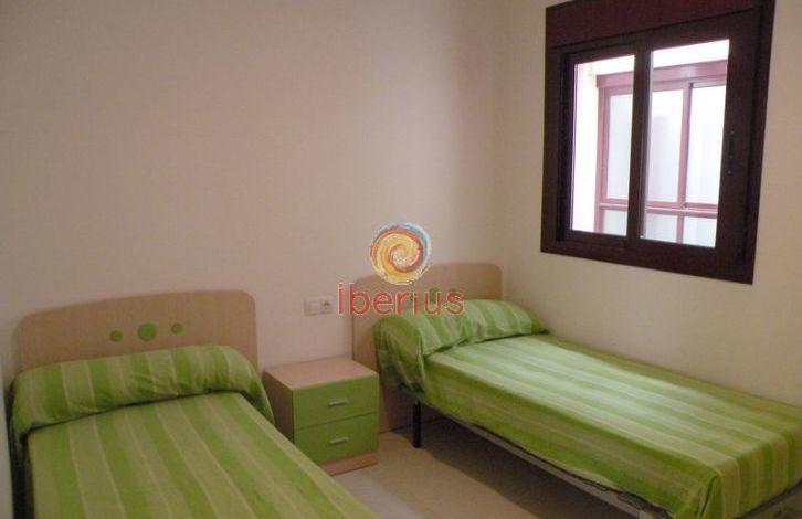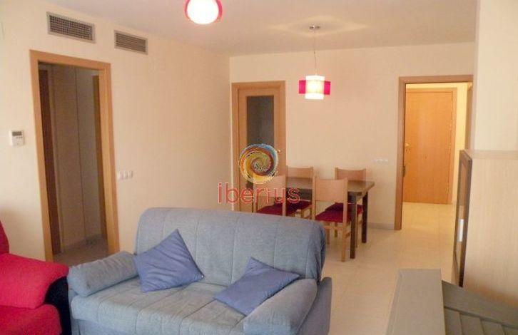 Планировка: прихожая, гостиная-столовая с выходом на террасу (6 кв. м), отдельная кухня, 2 спальни, ванная комната. Внешняя территория: общая озелененная территория и бассейн. Дополнительно: мебель, кондиционеры холод/тепло.
