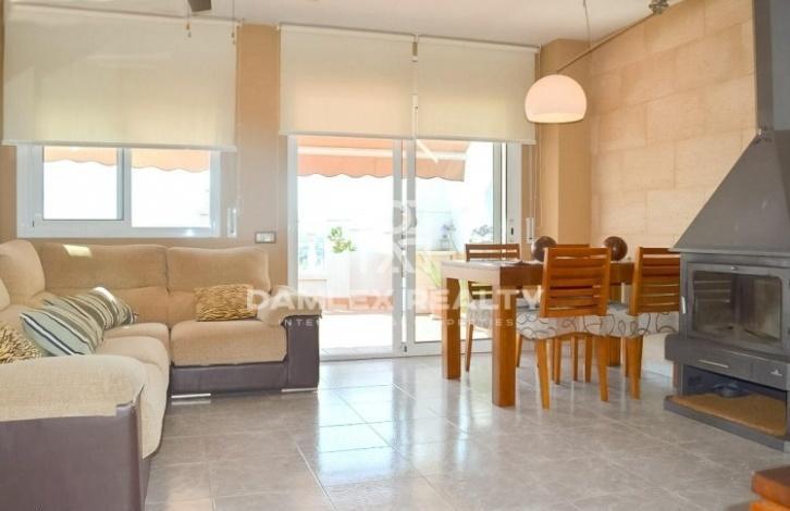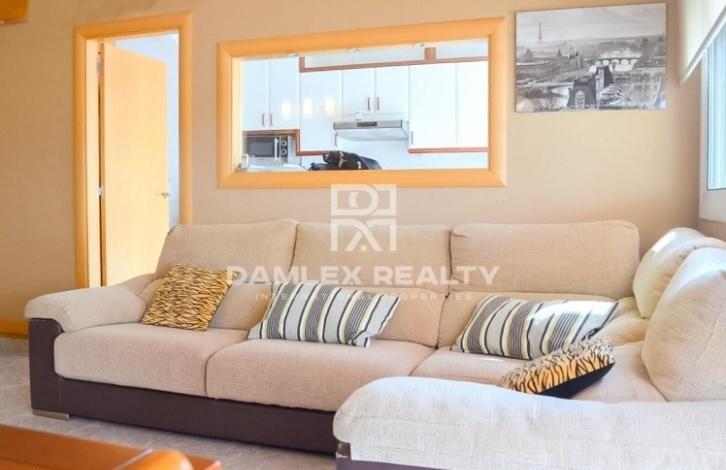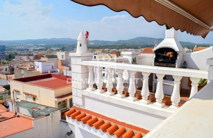 Квартира-дуплекс в Сант Пере де Рибес рядом с городом Ситжес. Квартира имеет просторный салон-столовая с камином и с выходом на террасу, с которой открывается вид на горы и море. Есть 3 спальни, одна из которых с собственной ванной комнатой и отдельная ванная. Кухня полностью экипирована бытовой техникой. Квартира имеет 2 этажа. На верхнем этаже расположена большая терраса с зоной барбекю. В квартире есть система кондиционирования. Пляж расположен в 15 минутах ходьбы.