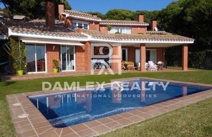 Продается просторная вилла с видом на море расположенная на побережье Коста Маресме, в 30 минутах езды от центра Барселоны. Вилла была построена в 1995 году, ее площадь составляет 460 м2. В доме 4 спальни, 5 сан узлов, гостиная с выходом на террасу, кухня. На цокольном этаже дома находится гараж на 3 автомобиля, игровая комната, винный погребок, подсобные помещения. Дом окружен прекрасным садом, общая площадь участка 1500 м2, есть автополив, бассейн, фруктовые деревья. С трех стороно к дому прилегает природный парк. Дом ориентирован на юг, имеет прекрасный вид на море.