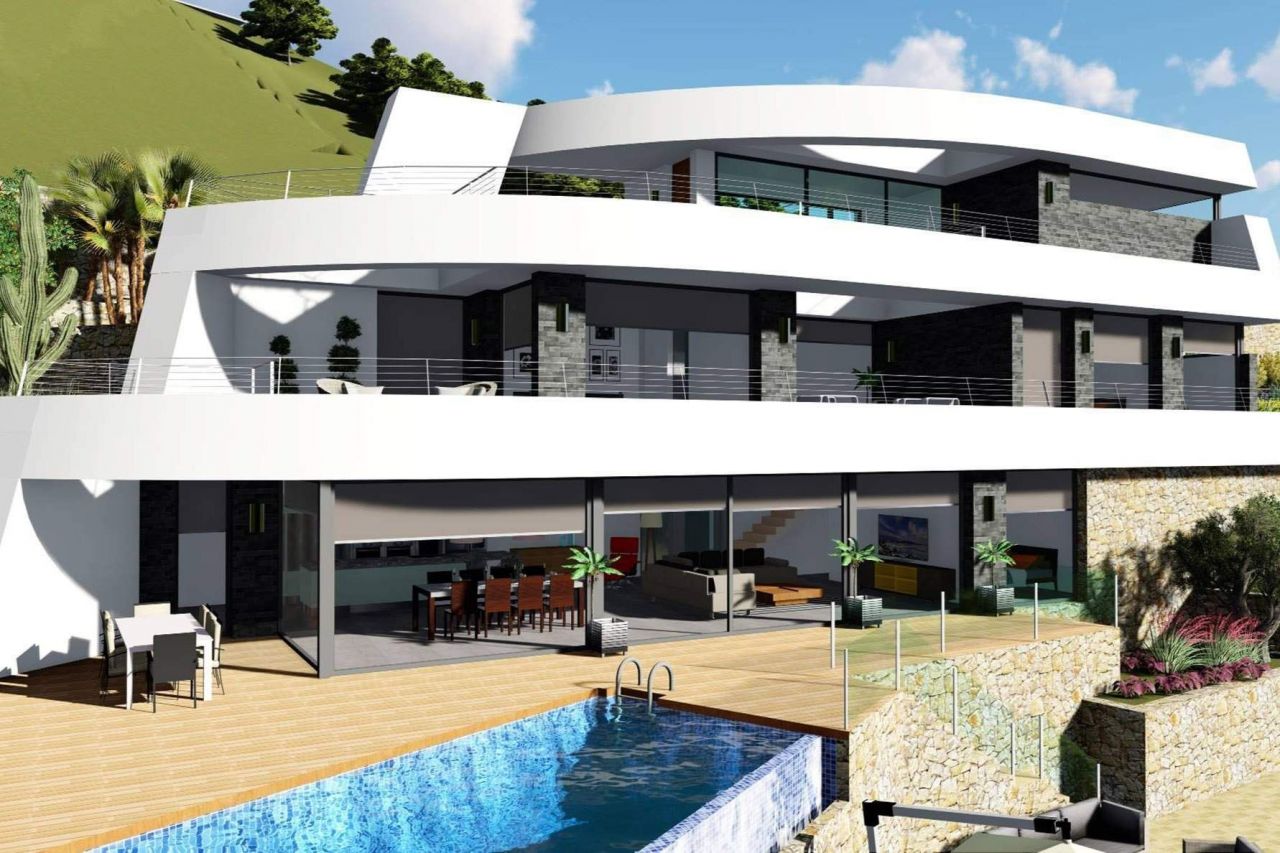 Новая вилла на побережье Бениссы между Морайрой и Кальпе. Этот роскошный дом современного дизайна расположен в эксклюзивном месте, и обладает ошеломляющим видом на море и Кальпе. Вилла расположена всего в 2 км от моря, на земельном участке 1513 м2 и имеет построенную площадь 496 м2, распределенных между 2 этажами и подвалом. Дом состоит из 4 спален, 5 ванных, большой кухни открытой планировки с островком, просторной гостиной, больших террас, внешнего и внутреннего бассейнов, барбекю, фитнес-зала, большого двойного гаража, лифта … В этом доме присущий оригинальный современный дизайн, материалы высшего качества с безупречным выполнением работ. Эта вилла - часть комплекса роскошных и высококачественных домов, объединенных в самой лучшей инфраструктуре в жилом районе, расположенном на Севере Коста Бланки.