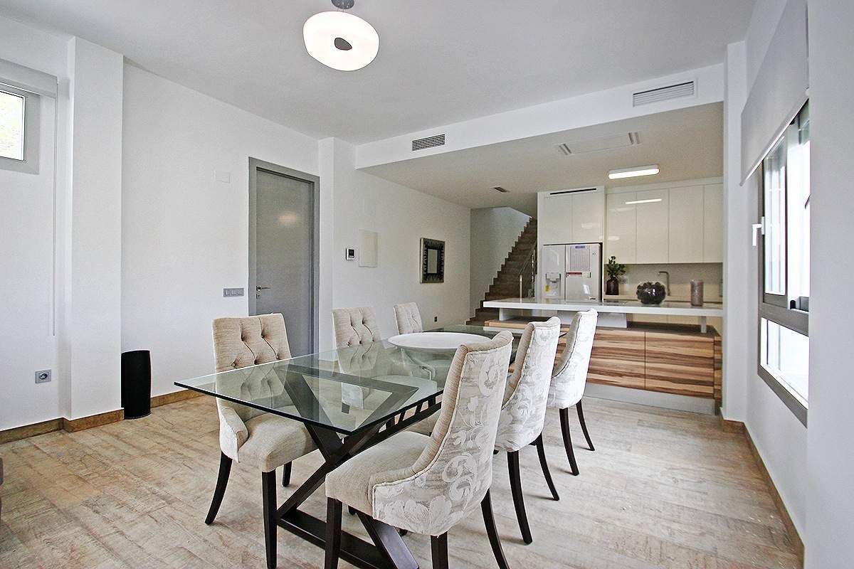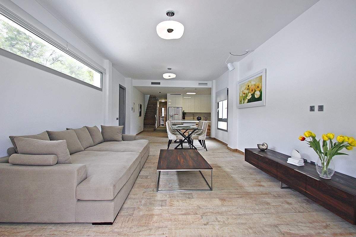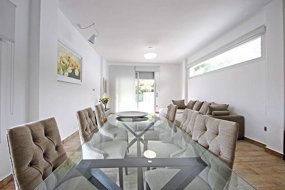 Совершенно новая вилла в Бениссе, в урбанизации Buenavista, в 1,5 км от моря (Cala del Advocat) и недалеко от Морайры и Кальпе. Этот недавно построенный дом современного дизайна. Он находится в тихом жилом районе и обладает прекрасными панорамным видом. Вилла расположена на земельном участке 817 м2 и имеет общую площадь 182 м2, распределенных между 2 этажами следующим образом: на первом - 2 двойные спальни со встроенными шкафами, 2 ванные, кухня, гостиная 55 м2 с которой имеется доступ на большую наружную террасу с красивым бассейном 9x3 м. На верхнем этаже - большая спальня (20 м2), со встроенными шкафами, 1 ванная и частная терраса 70 м2. Дом недавно построен, с материалов высшего качества и безупречным выполнением строительных работ. Он оборудован предворительной установкой кондиционирования воздуха. Сад – с низкими эксплуатационными расходами. На территории также имеется большая стоянка для нескольких транспортных средств. Отличный выбор для того, кто ищет современную виллу в красивом и тихом районе и по очень хорошей цене.