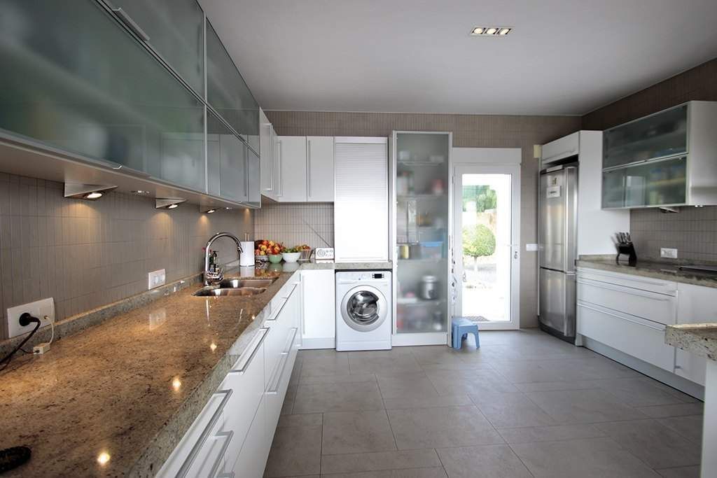 Роскошная вилла в Кальпе, в урбанизации Cometa, находится в тихом жилом районе (в тупике), в 1,9 км от пляжа Levante La Fosa, очень близко к Побережью Бениссы и Морайры. Эта великолепная вилла обладает прекрасным панорамным видом на море и скалу Peñón de Ifach. Она расположена на земельном участке 900 м2 и имеет общую площадь 320 м2, распределенных меду 2 этажами следующим образом: на первом - просторный вестибюль, 2 двойные спальни (20 м2 каждая), 2 ванные, 1 отдельный туалет, большая кухня 30 м2, зал-столовая 30 м2 и фантастическая веранда 60 м2. На верхнем этаже есть 2 двойные спальни (20 м2 и 16 м2), 1 студия 20 м2, с которой предоставляется доступ на частную террасу 55 м2, на которой можно наслаждаться невероятным панорамным видом на море. У этой виллы - изящное современное художественное оформление и очень высококачественные материалы. Дом оборудован центральным отоплением, пред инсталляцией кондиционирования воздуха, электрическими жалюзями, системой светодиодного освещения периметра и так далее. Прекрасная терраса 80 м2, на которой разместился бассейн 12x4 м с системой соленой очистки и предварительно установленной системой подогрева. Красивый сад 150 м2 с автоматической системой полива и низкими эксплуатационными расходами. На территории также есть большая стоянка, навес и большой гараж, который также исполняет функции чулана.