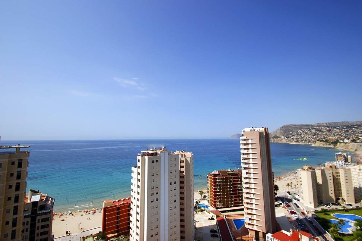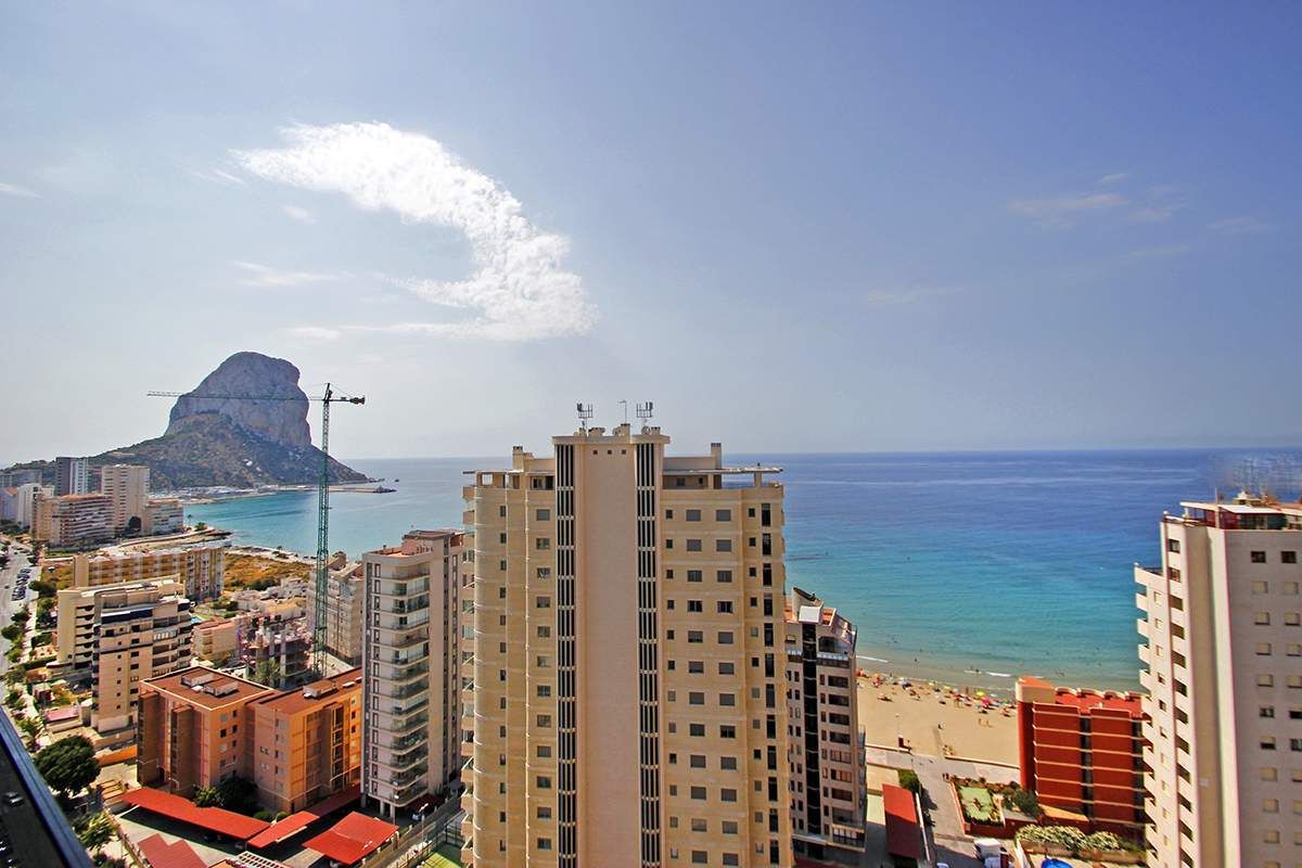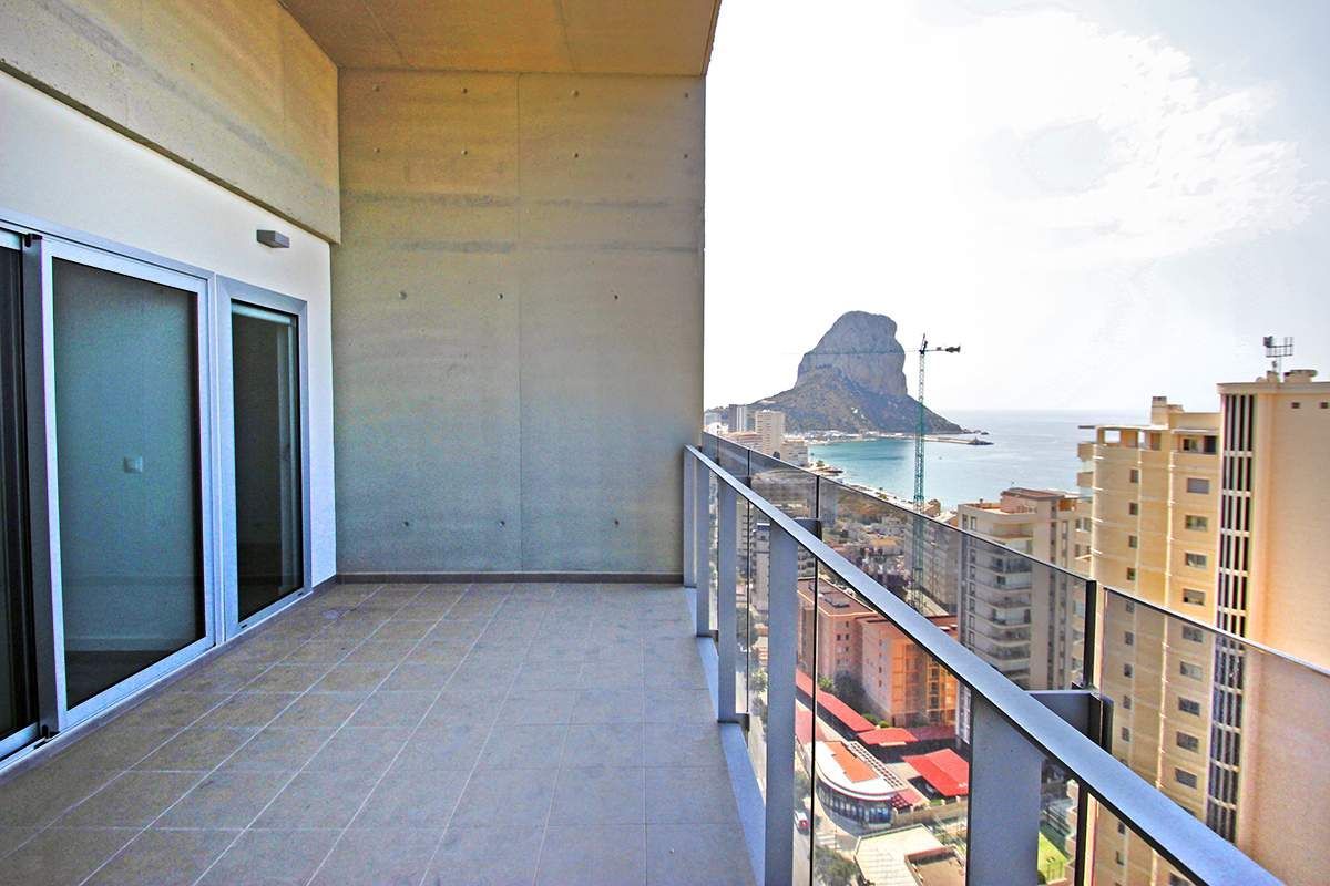 Новый пентхаус в Кальпе. Эти прекрасные апартаменты расположены на второй линии пляжа Poniente Arenal Bol, всего в 80 метрах от пляжа и в 250 метрах от центра города. Площадь квартиры 86 м2, распределенных следующим образом: 2 двойных спальни, (обе спальни с прямым доступом к террасе, а главная комната имеет гардиробную и ванную), 2 ванные, гостиная-кухня (открытой планировки, 30 м2), с доступом к большой крытой террасе 16 м2. Квартира обладает превосходным панорамным видом на море и Скалу Ifach, солнце весь день (южное направление), и очень приватная, поскольку это единственная квартира на этаже (пентхаус без соседей). Этот пентхаус расположен в новом комплексе, построеном в 2016 году. Апартаменты оборудованы канальным кондиционером (тепло/холод). В здании есть коммунальный бассейн, корт для падел-тениса, детская площадка и большие зеленые зоны. Квартира включает 1 парковку в закрытом гараже и кладовку 5 м2. Эта квартира выделяется своей приватностью, панорамным видом и превосходным местоположением.