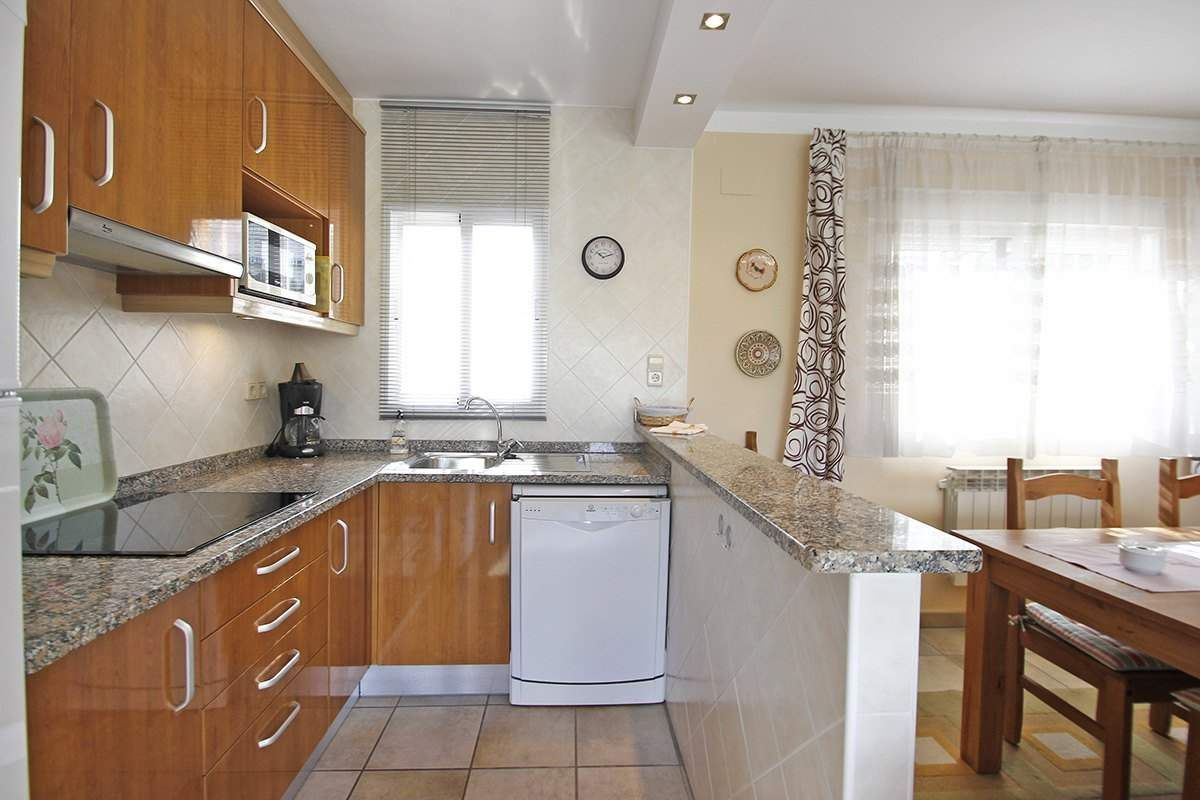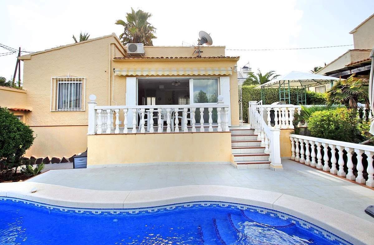 Вилла в Кальпе, в урбанизации Calalga, расположенная всего в 500 метрах от моря (пляж Levante), и от всех услуг (супермаркеты, магазины, рестораны, автобусная остановка …). Дом расположен на ровном земельном участке 500 м2 и имеет общую площадь 80 м2 распредиленных на одном этаже следующим образом: 2 спальни со встроенными шкафами, 1 ванная, гостиная-столовая и кухня открытой планировки, из которой есть доступ к террасе с навесом 15 м2, соединяющаюся с зоной чиллаут 15 м2, где находится барбекю. Эта вилла обладает очень хорошей открытой террасой 30 m2, где находится бассейн 8 x 4. Рядом с бассейном есть также большая ванная, и еще есть очень удобная кладовая 5 м2. На территории также есть большая стоянка с навесом для 2 автомобилей с автоматической дверью. Эта вилла была полностью отремонтирована, и находится в отличном состоянии. Хотелось бы выдвинуть на первый план превосходное местоположение этой виллы (5 минут от всех услуг), а также в очень тихом районе (тупиковая улица). Сад - очень хороший с низкими эксплуатационными расходами.