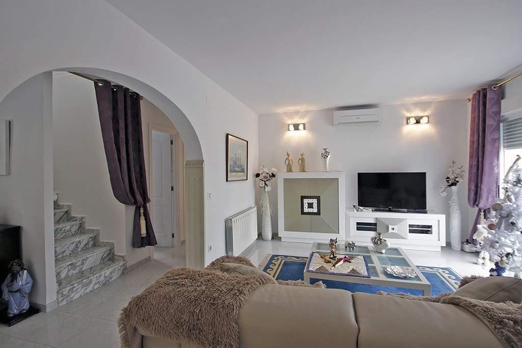 Просторная вилла в урбанизации Cometa III. Два этажа, 3 спальни, 3 ванные, кондиционирование воздуха по всему дому, большая кухня и гостиная, плюс хороший круглый офис. Веранда 18 м2 и терраса 14 м2 на 2-м этаже. Бассейн 10х5 м на просторной террасе и хорошо ухоженый сад. Красивый дом для большой семьи.