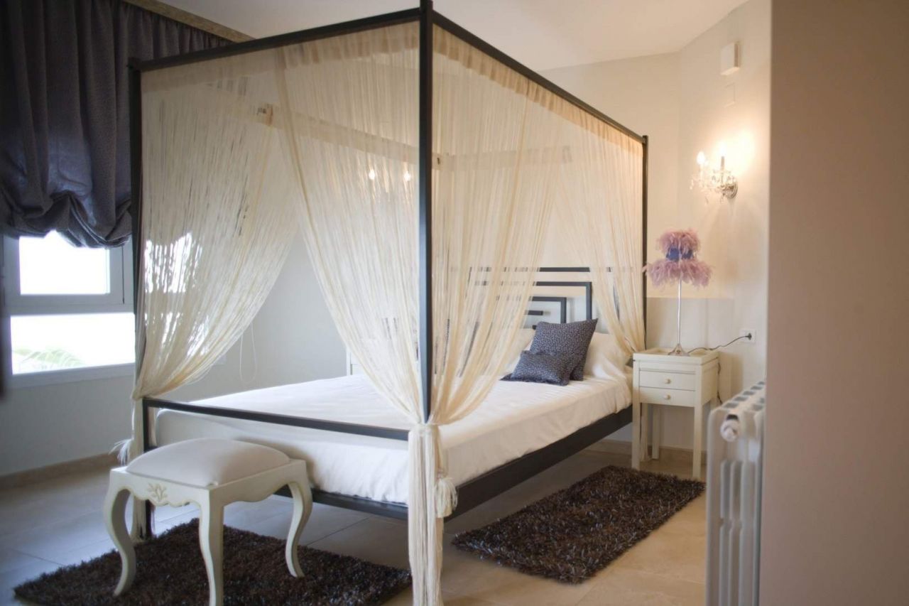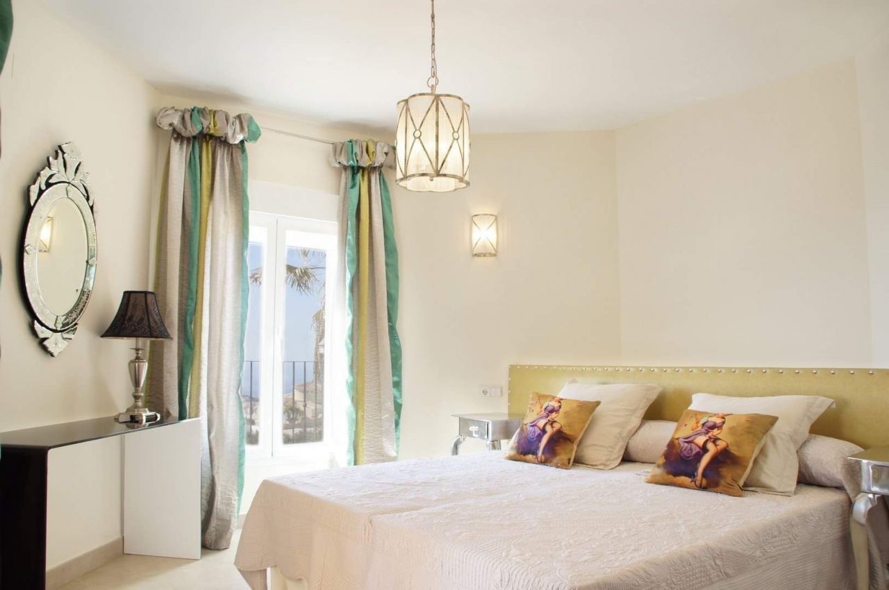 Нео-классическая двухэтажная вилла. На верхнем - 2спальни, 2 ванные, оборудованная кухня с доступом к террасе и барбекю, гостиная с камином, большая веранда. На нижнем этаже - 1 комната с ванной и раздевалкой, ванная и пространство для спортзала/сауны, чулана, мастерской, веранда с выходом на открытую террасу с бассейном. Дом меблирован декоратором. Вилла оснащена сигнализацией, предустановкой кондиционеров воздуха и отопления.