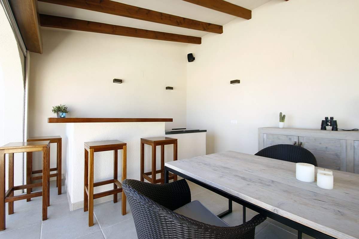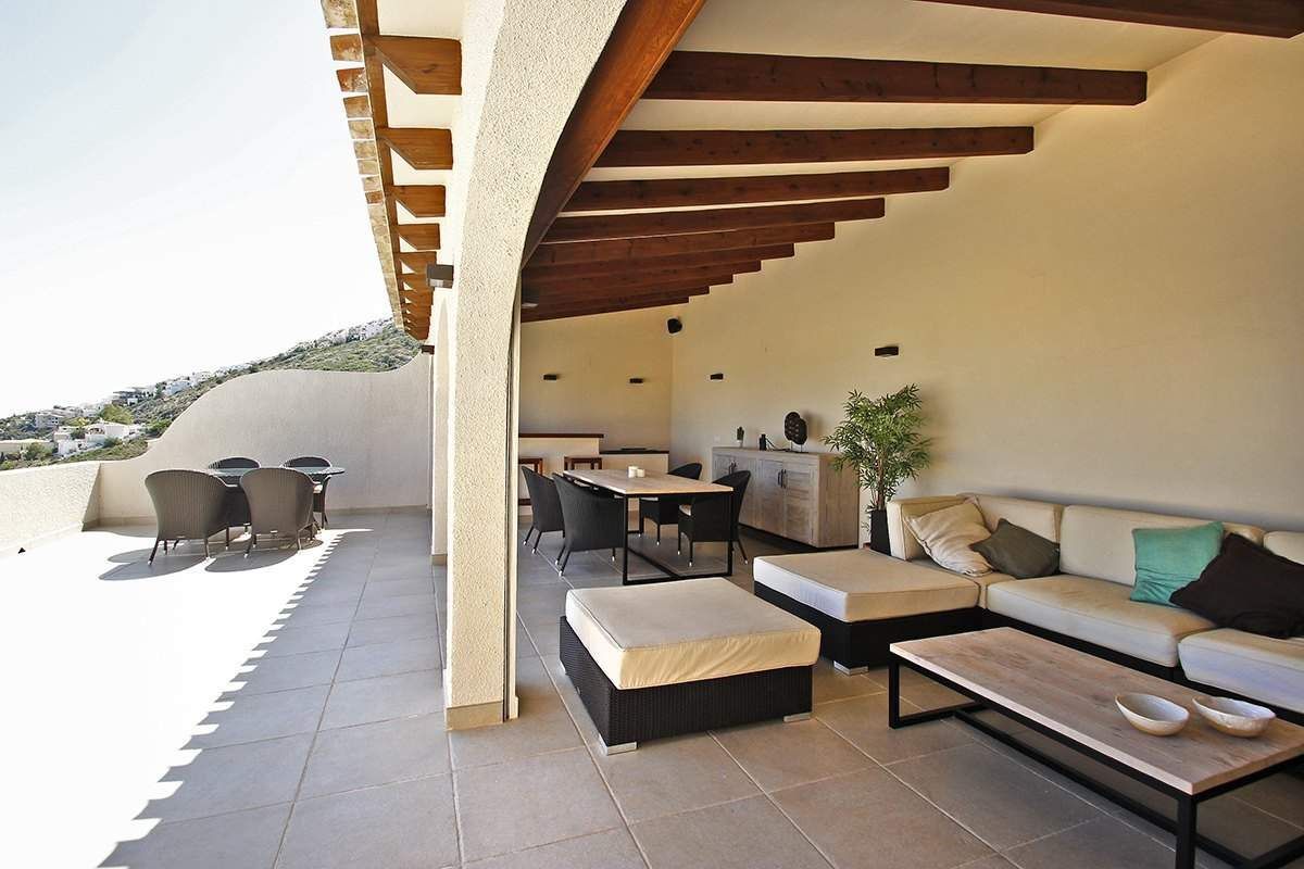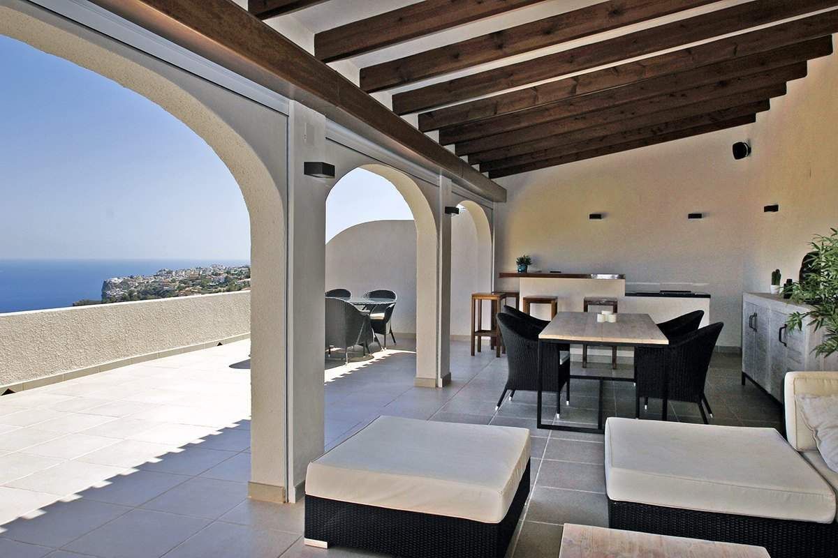 Вилла на Кумбре дель Соль (Benitachell), расположенная в тихом жилом районе, в 800 метрах от магазинов и ресторанов и в 2,5 км от моря (Cala Moraig). Этот дом обладает фантастическим панорамными видом на море, и превосходным южным направлением (солнце весь день). Вилла расположена на земельном участке 1000 м2 и имеет общую площадь 225 м2, распределенных между главным домом и апартаментами следующим образом: в главном доме есть 2 спальни, 2 ванные, кухня, гостинаяоткрытой планировки 70 м2, которая соединяется с наружной террасой, где есть веранда 40 м2, полностью оборудованная фантастическая наружная кухня. На нижнем этаже есть апартаменты с 2 спальнями, 1 ванной и гостиной 20 м2. Кроме того, есть отдельная прачечная. Этот дом был построен в 2005 году, и находится в отличном состоянии. Вилла оборудована кондиционерами воздуха (тепло/холод). Возле дома есть просторная наружная терраса с бассейном 8x4 метра. Сад - хороший с низкими эксплуатационными расходами (автоматической системой полива). Также есть двойной гараж с 2 отдельными доступами.