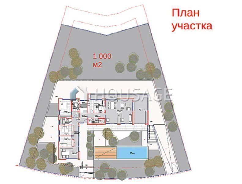 Дом располагает 4-мя спальнями, гостиной-столовой, кабинетом, кухней, прачечной, гаражом, кладовыми, бассейном.