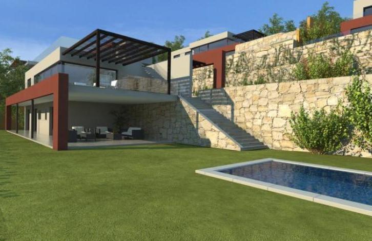 2 этаж: Прихожая, кухня, гостиная-столовая, спальня suite с собственной ванной комнатой. Из всех помещений выход на террасу с видом на море и город. 1 этаж: 4 спальни, 2 из которых suite с собственными ванными комнатами, салон. Из всех спален выход на террасу с зоной chill out и небольшой летней кухней.
