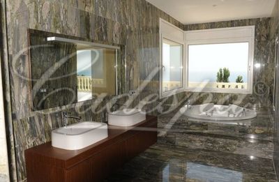 В доме: холл с лестницей на второй этаж, салон-столовая, экипированная кухня, 7 спален с ванными, игровая комната, спа центр, винный погреб, квартира для персонала.