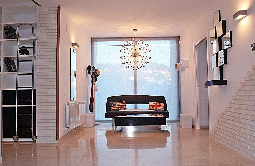 Современный большой дом в урбанизации Cala Sant Francesc города Blanes. Расстояние до центра Барселоны 60 км, расстояние до моря около 500 метров. Общая площадь 450 м.кв. на территории 1540 м.кв. В доме 4 спальные комнаты, 5 ванных комнат, салон с выходом на терассу, кухня, несколько терасс и балконов, гараж на 2 автомобиля. Система отопления, турецкая сауна, спортивный зал с джакузи. У дома красивый сад с бассейном. При строительстве использовались материалы высокого качества. С территории открываются красивые виды на море! В урбанизации есть собственная коммунитарная зона с большим бассейном, теннисными кортами, баром и детской площадкой.