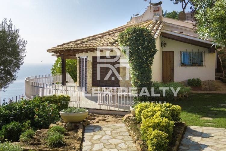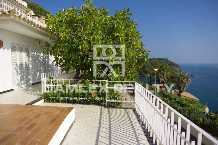 Вилла в каталонском стиле с типичной для этой архитектуры башенной системой постройки, большими террасами с фронтальным видом на море и черепицей. На первом этаже виллы расположен салон-столовая с камином и выходом на террасу, кухня, гостевой туалет, 2 спальни и ванная комната. На нижнем этаже расположены ещё 2 спальни и ванная комната. На цокольном этаже расположена зона отдыха с баром, камином и большим столом.Есть гараж на 2 большие машины. Из всех комнат виллы открывается потрясающий вид на море.