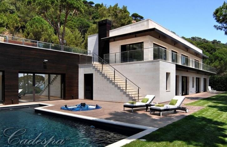 Современная вилла в престижной урбанизации побережья Коста Брава в живописном районе с хвойной растительностью. Вилла предлагает 600 кв.м. общей площади, 5 спален с гардеробными, 5 ванн, 2 гостиные, систему домотики, фасад из мрамора, красивый вид на море и горы.