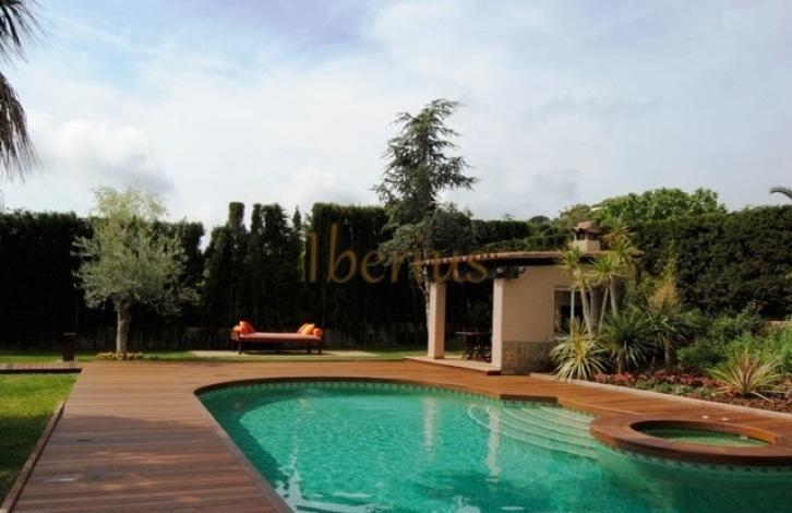 Ровный участок с большим бассейном и джакузи с подогревом воды.