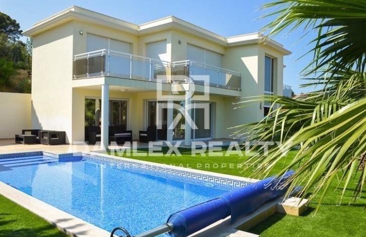 Предлагаем новую уютную виллу с хорошим видом на море. Дом находится в одном из лучших мест Коста Бравы- Плайя де Аро. Город отличается своим высоким уровнем жизни, развитой инфраструктурой и прекрасными пляжами. Плайя де Аро уже давно стал излюбленным местом отдыха испанской элиты и обеспеченных иностранцев. Рестораны и бутики города снискали известность далеко за его пределами. Недвижимость на побережье Коста Брава, в частности, в Плайя де Аро пользуется особой популярностью среди тех, кто ищет комфорт и размеренный образ жизни на берегу Средиземного моря. Приятным бонусом для покупателей недвижимости является возможность оформления испанской резиденции для всей семьи. Данный объект расположен неподалеку от центра Плайя де Аро, дорога от дома до пляжа или города очень удобная, без крутых подъемов или спусков. Дом построен в 2012 году, выдержан и декорирован в классическом стиле с использованием современных элементов. Площадь виллы составляет 325 м2, в доме 4 спальни суит, просторные террасы, гостиная с камином, большая полностью оснащенная кухня, сигнализация, отопление и кондиционирование, гараж. Дом продается с мебелью. Вокруг дома разбит сад с бассейном, площадь участка 750 м2. Высокое качество отделочных материалов. Вилла очень светлая и уютная, приличные соседи и окружение.
