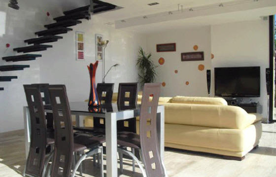 Площадь дома составляет 160м2 и в его планировку входят 3 спальни, 2 ванные комнаты с джакузи и гидромассажным душем, гостиная, кухня и терраса. А на территории с бассейном есть сад 600м2, зона барбекю, гараж и парковка для гостей.