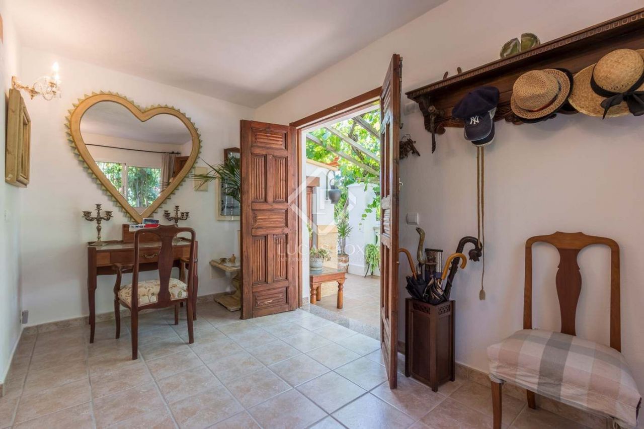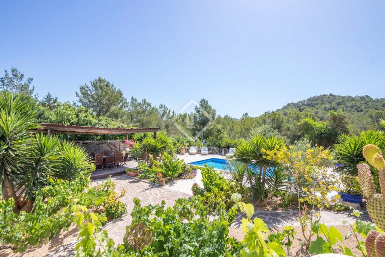 Built in 1985, this 3-bedroom property enjoys lovely country views and is on a leafy plot with flowers and fruit trees. The porch in front of the house with the hanging vines, front chill out terrace, swimming pool and wooden terrace with a shelter and barbecue make this the ideal place to enjoy the relaxed Ibiza lifestyle.