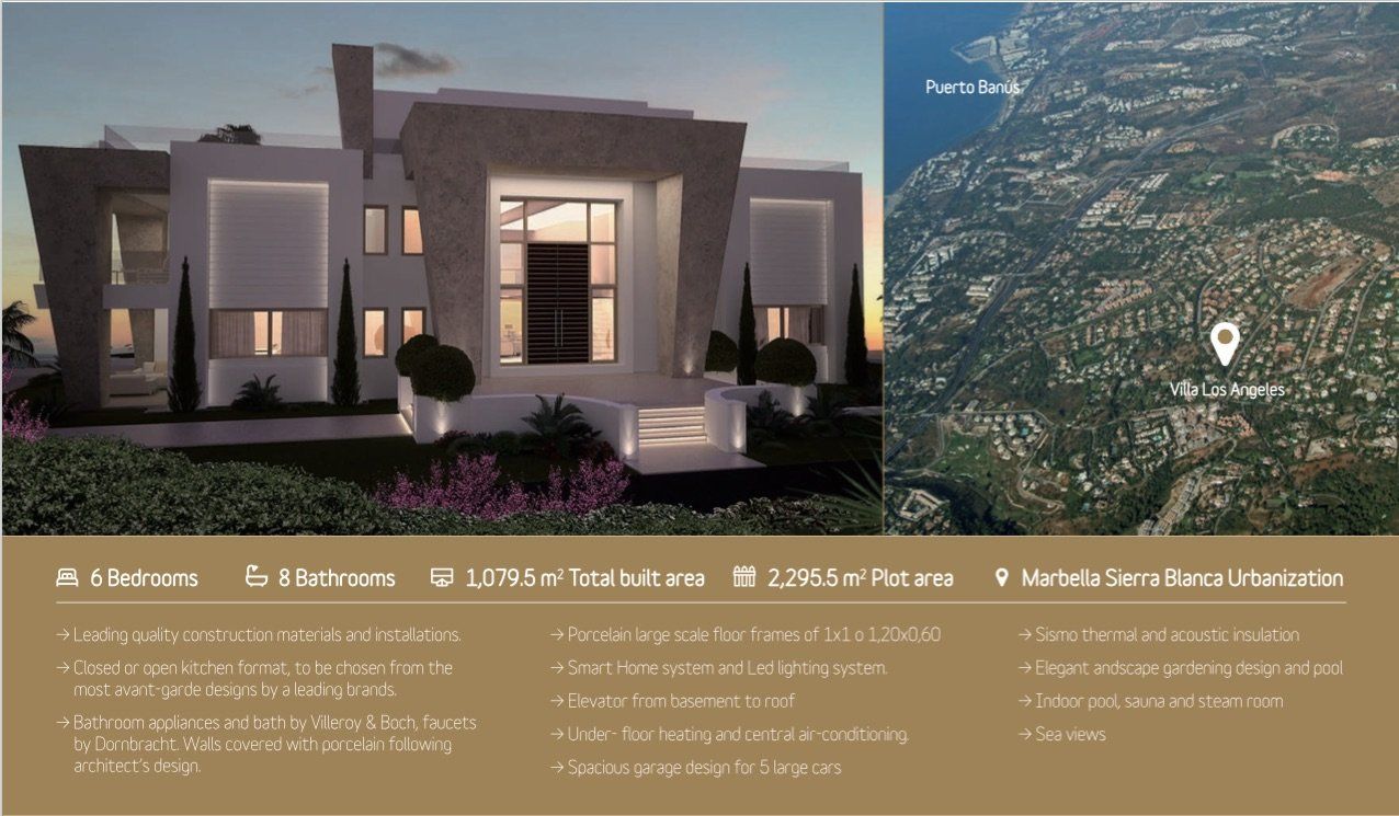 Вилла расположена на возвышенности с которой открываются великолепные виды на лучший курорт в Средиземном море. Все помещения выполнены по самым высоким стандартам, с высокими потолками и окнами от пола, чтобы максимально эффективно использовать естественное освещение Средиземноморья. Бескрайний бассейн перед домом, плюс внутренний бассейн с подогревом, дают возможность насладится полностью комфортом, СПА, тренажерный зал, игровой зал, кинозал.