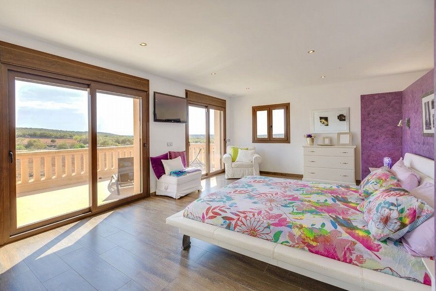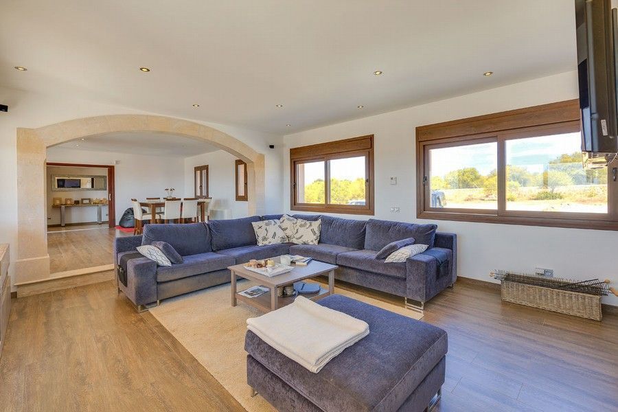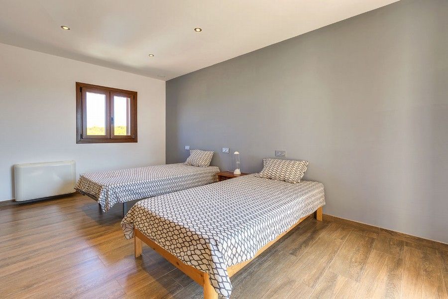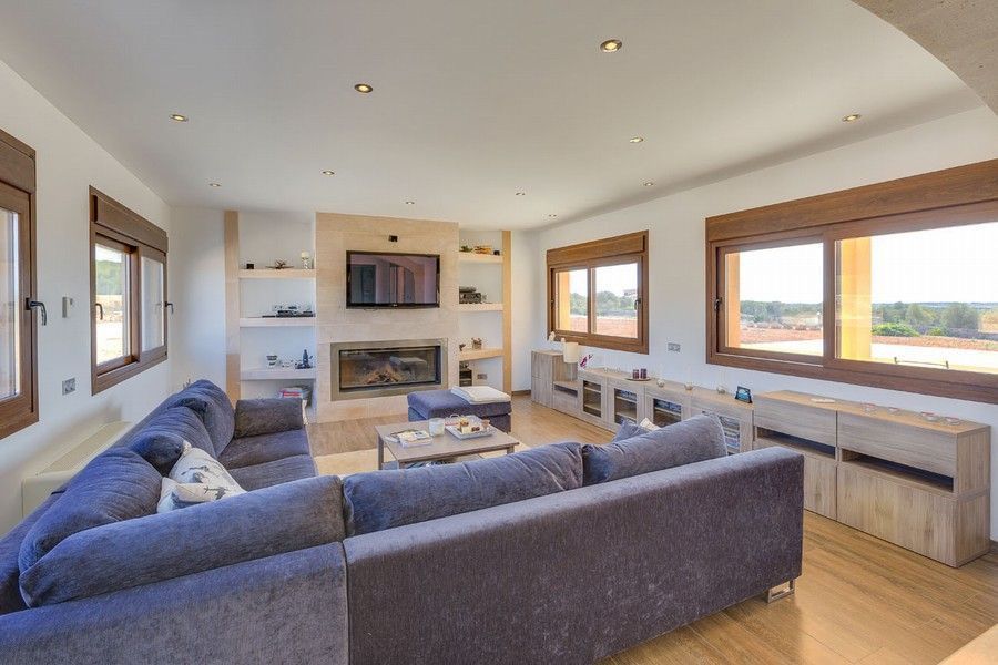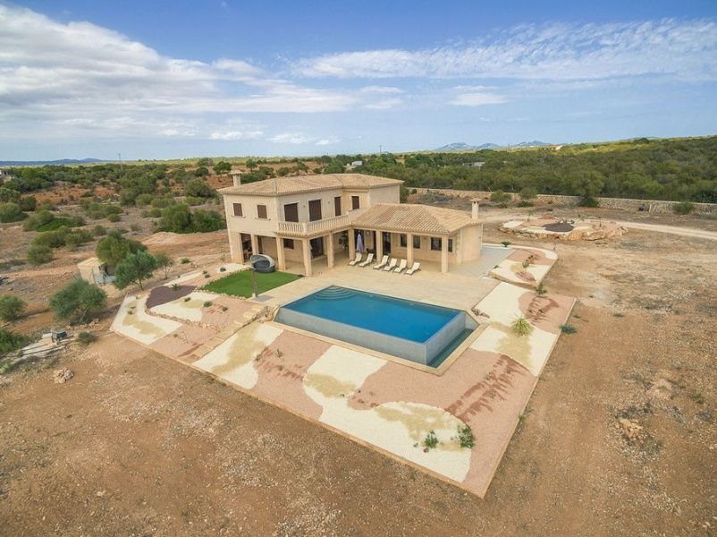 Эта современная усадьба, открывающая панорамные виды на открытое море и остров Кабрера, расположена на небольшом холме на юге Майорки, между Кампос и Колонией Сант Джорди. До райского пляжа Эс Тренк с его белым песком и прекрасной водой бирюзового цвета можно легко добраться на машине