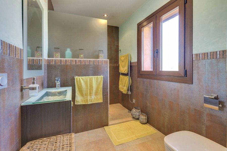 Светлая усадьба, ориентированная на юг, находится на участке площадью около 21. 000 м2 и скрыта от посторонних глаз. Двухэтажный дом усадьбы с подвалом оборудован по последнему слову техники и имеет 3 двухместные спальни и 2 ванные комнаты, просторную гостиную-столовую с камином и отдельную кухню, оборудованную всем необходимым. На верхнем этаже находится терраса с прекрасными видами, а на нижнем этаже - большая терраса с навесом и зоной для барбекю, выходящая к отличному бассейну.