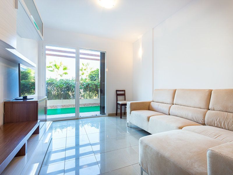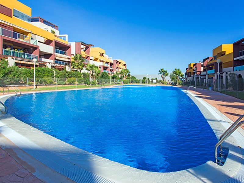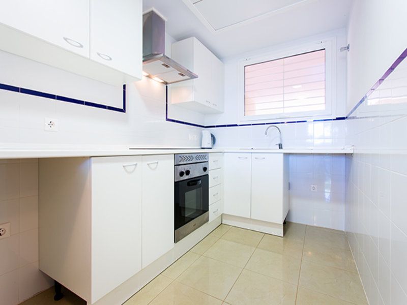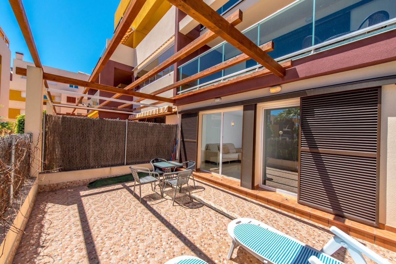 Квартира в Аламеда-дель-Мар, Ориуэла-Коста. Салон с обеденной зоной, отдельная кухня, 2 спальни, 1 ванная комната. Общая площадь 87 м2.Небольшой участок площадью 22 м2. В комплексе есть общий бассейн, сад и подземный паркинг.