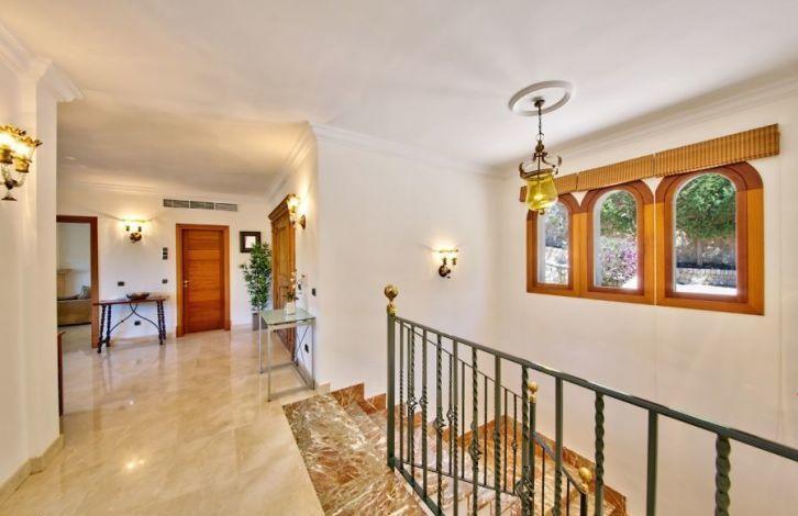 Расположенная в очень тихом месте, в одном из самых эксклюзивных районов города Пальма-де-Майорка, эта вилла в средиземноморском стиле разместилась в верхней части Сон Виды. Знаменитое поле для гольфа находится поблизости, а до центра столицы Балеарских островов можно добраться примерно за 10 минут на машине.Двухэтажная вилла на Майорке ориентирована на юг и предлагает 3 спальни с собственными ванными комнатами и два туалета для приглашенных. Спальни, в том числе главная спальня с гардеробной, расположены на первом этаже, который также имеет доступ к саду с переливающимся бассейном, в то время как прихожая, гостиная-столовая с камином и просторная кухня находятся на втором этаже. Крытые террасы имеют панорамный вид на жилой район. Другие характеристики собственности включают в себя кондиционер воздуха, полы с подогревом, встроенные шкафы, прачечную и гараж на несколько автомобилей. Зона и достопримечательности Сон Вида, расположенная в нескольких минутах от города Пальма-де-Майорка, предлагает спокойствие острова в окружении роскоши и престижа. Занятие одним из самых элитных видов спорта постоянно в Сон Виде и в прилегающих к нему зонах, так как сам жилой район имеет собственное поле для гольфа, Клуб-де-Гольф Сон Вида, наряду с престижным отелем с одноименным названием. Марины для прогулочных судов Пуэрто Портальс и Реаль Клуб Наутико-де-Пальма находятся поблизости и приглашают прекрасно провести время. Кондиционер, Встроенные шкафы, Камин, Постирочная, Портик, Домофон, Укрепленая дверь, Сигнализация, Терраса, ГардеробнаяНОМЕР ОБЪЕКТА НА HOUSAGE: 220141