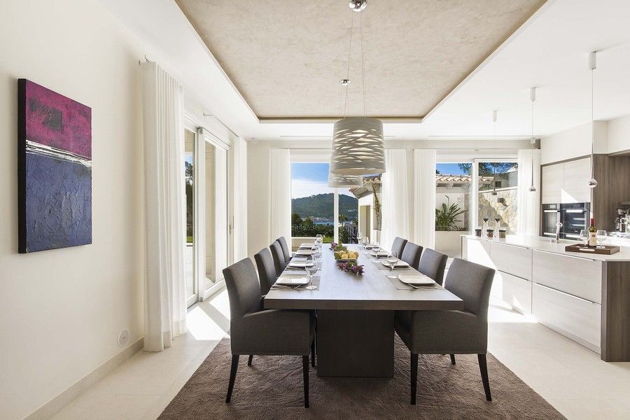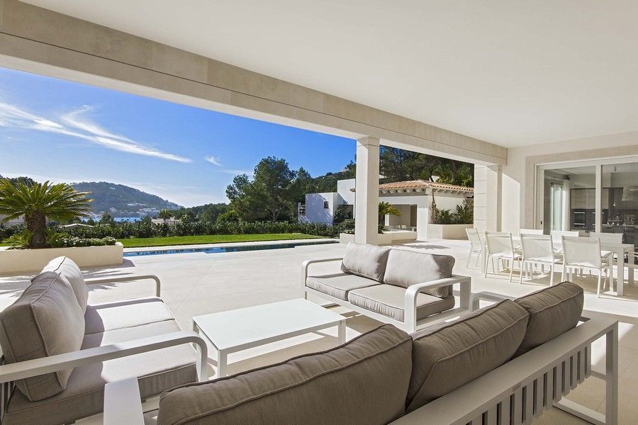 Благодаря огромным панорамным окнам, открывающим фантастические виды на порт, в дом попадает много света. В доме есть просторная гостиная, вместительная дизайнерская кухня высокого качества и столовая. Дом окружает прекрасный сад с пальмами, фруктовыми и оливковыми деревьями. Также имеются несколько больших террас, большой климатизированный бассейн переливного типа, домик для барбекю, открытая кухня и красивая зона для отдыха.