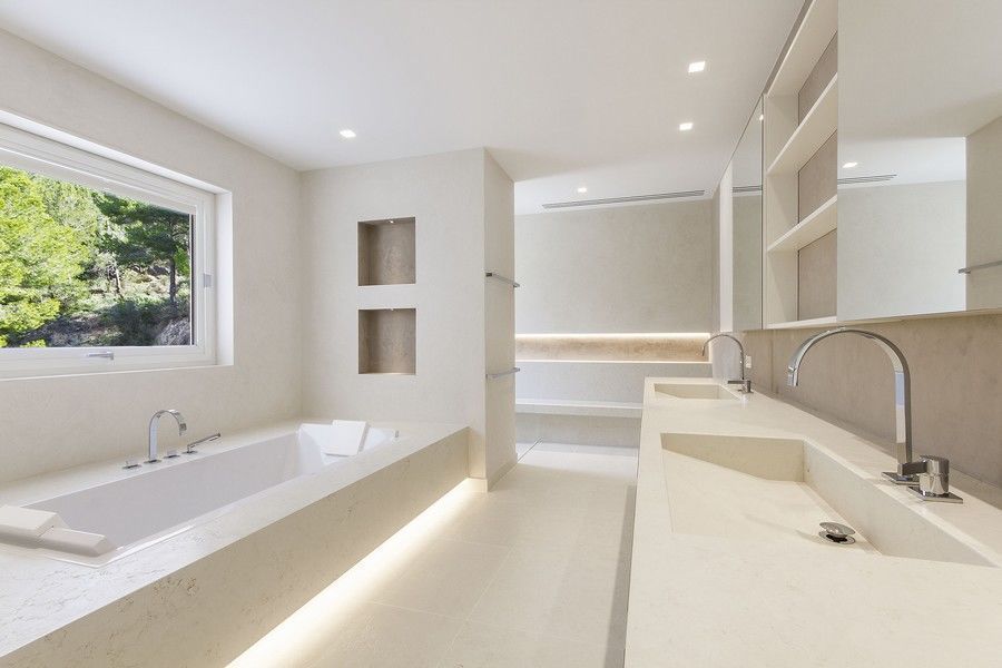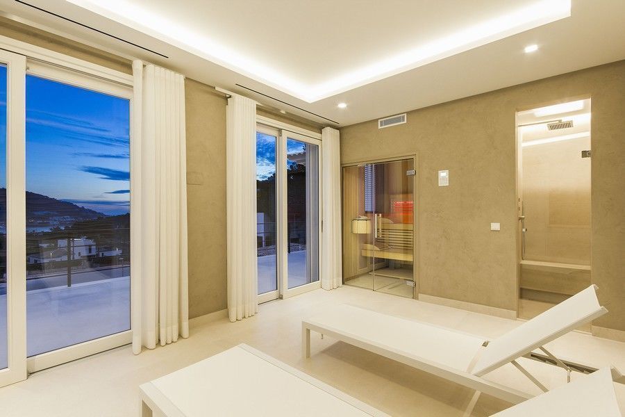 Очень просторная трехэтажная вилла, элегантно соединяющая современный дизайн и традиционный средиземноморский стиль, имеет 4 спальни с собственными ванными комнатами. Главная спальня имеет смежную с ней зону СПА с сауной, душем и террасу. Также имеется гостевой дом с отдельным входом, оборудованный всем необходимым, и большая терраса.