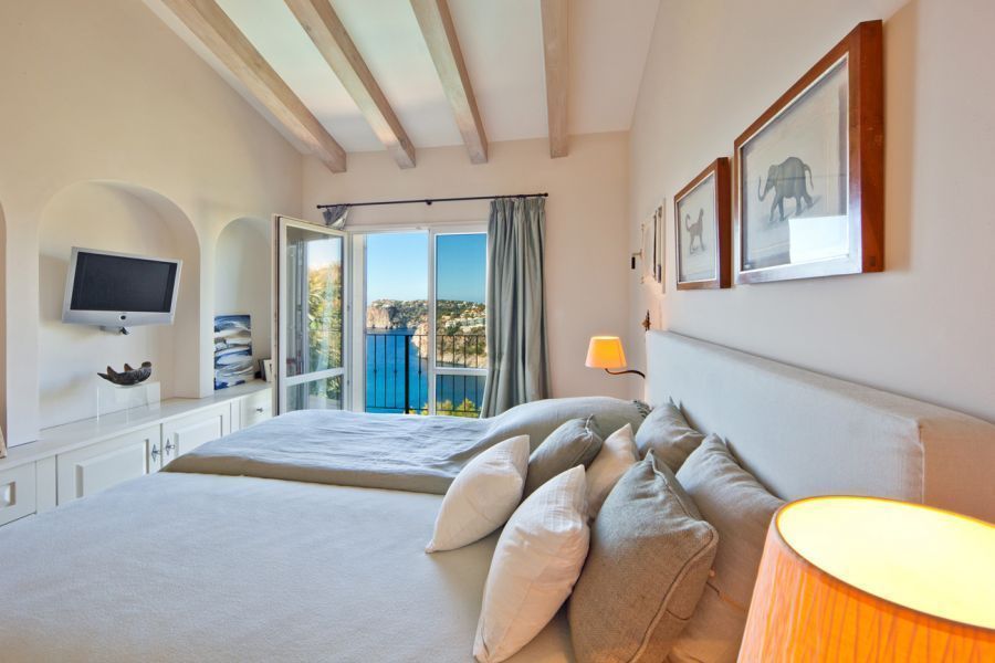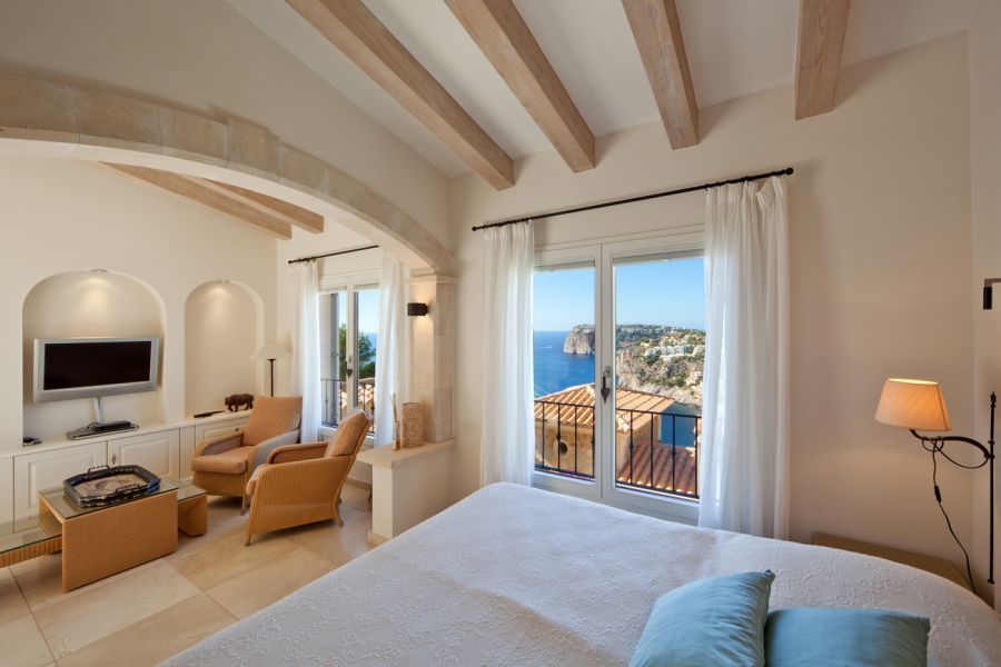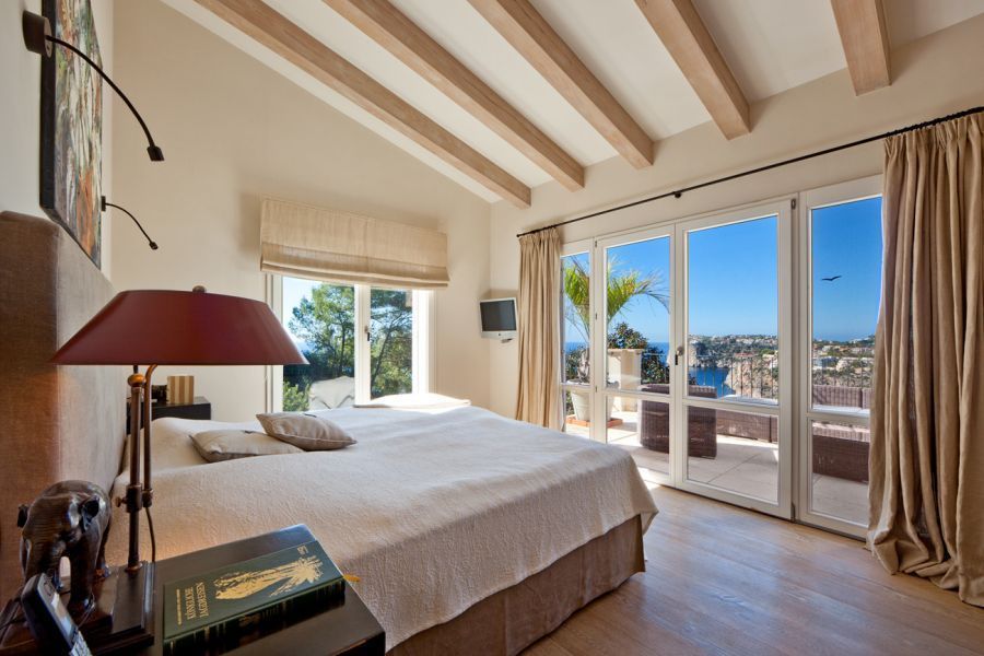 Светлая вилла класса люкс совмещает современный стиль и традиционные элементы, такие как каменные арки и деревянные балки. Главный дом и дом для гостей имеют в общей сложности 4 спальни и 4 ванные комнаты, просторную гостиную с камином и оборудованную всем необходимым кухню со столовой. Все помещения и многочисленные солнечные террасы открывают прекрасные виды на море. Имеется красивый сад с бассейном.