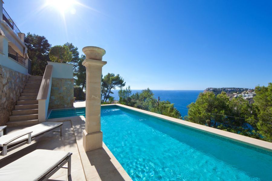 Эта великолепная вилла расположена на возвышенности в эксклюзивном жилом районе в Кала Йамп на юго-западе Майорки, в нескольких минутах езды от Порта Андратч. Вилла имеет впечатляющие виды на море, что дает возможность насладиться самыми романтическими закатами. Поле для гольфа и песчаный пляж Камп де Мар находятся в зоне досягаемости.