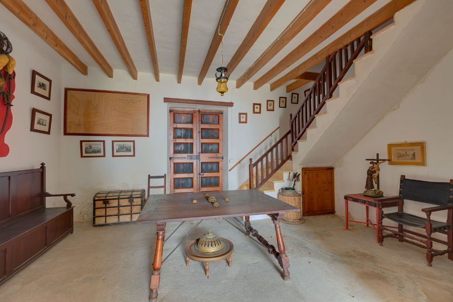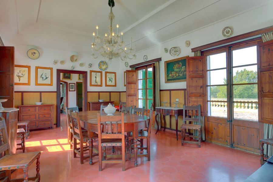 Двухэтажный главный дом имеет более чем 1. 300 м2 площадь. Он предлагает в общей сложности 10 спален с 4 ванными комнатами и на втором этаже находятся большая гостиная-столовая с камином, отдельная кухня и еще одна гостиная, а также обширная открытая терраса, окружающая здание, откуда открывается великолепный вид на поместье, и которая идеально подходит для того, чтобы принять несколько или много гостей. Первый этаж, сохранивший типичные майоркинские арки, нуждается в проведении более серьезного ремонта. Он также располагает старинной кухней и несколькими гостиными.