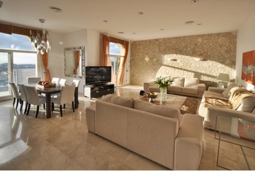 Речь идет о собственности, которая имеет превосходное расположение, напротив морского берега с потрясающим видом на море, в жилом районе, находящимся в уникальном месте у подножия гор Сьерра-де-Трамонтана. Вилла имеет красивый и величественный внешний вид. Ее ухоженные интерьеры полны деталей, которые говорят о хорошем вкусе хозяев и элегантности. Великолепно подобранная мебель, мягкие и теплые цвета помещений, а также природный камень, украшающий некоторые стены резиденции, способствуют созданию средиземноморской атмосферы в доме. Особого внимания заслуживает открытая площадка с переливающимся бассейном, расположенная прямо перед морем, и сказочный солярий с шезлонгами и зоной для отдыха, где можно наслаждаться восходами и закатами солнца, которые дарит нам наш чудесный остров.