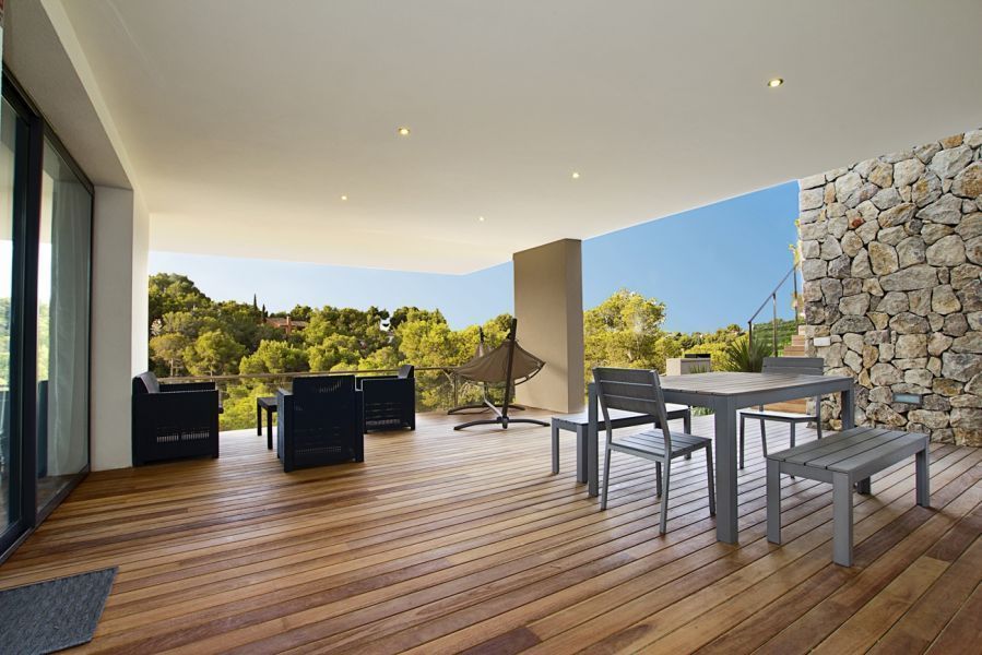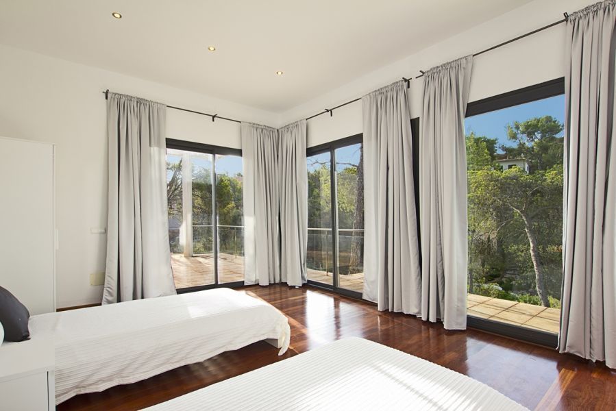 Превосходная недавно построенная вилла класса люкс , находится в эксклюзивном и элитном районе Portals Nous , в зоне Calvià на Майорке . Строительство дома было завершено в 2013 году. Этот четырехэтажный особняк, жилая площадь которого составляет 500 кв.м, имеет 5 спален, 4 ванные комнаты,туалет и 300 кв.м террасу. Вилла расположена на земельном участке площадью приблизительно 1500 кв.м и ориентирована на юг. Более того, в доме есть просторный гараж,прямоугольный бассейн с солярием, сад, кондиционер, апартамент для гостей, встроенные шкафы, балкон, барбекю, камин, двойной стеклопакет, джакузи, солнечные панели, бронированная дверь, сигнализация и гардеробная. Недвижимость полностью меблирована.