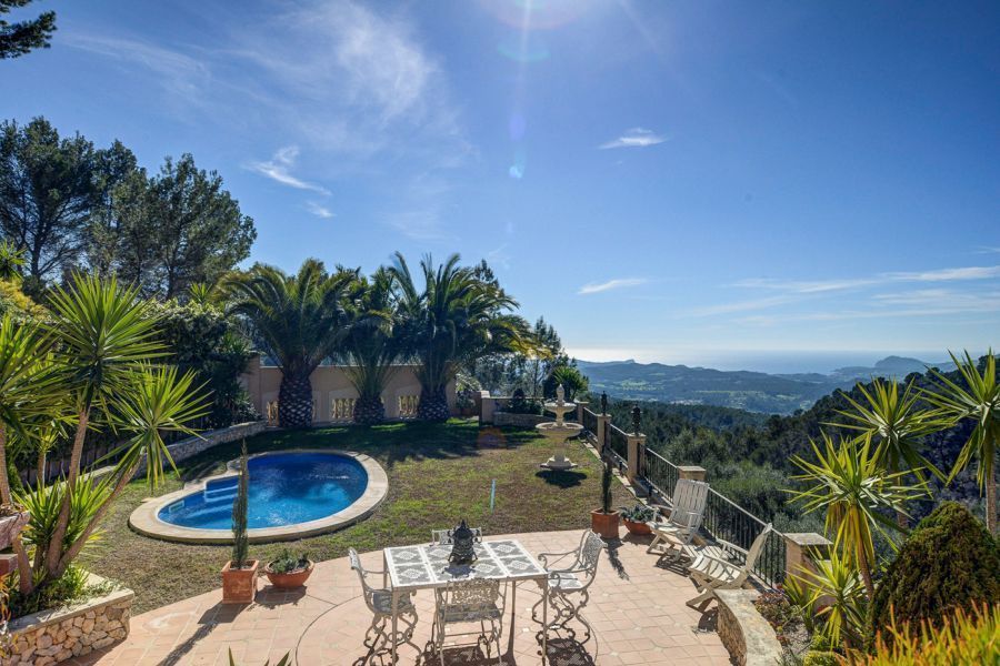 Удобно расположившаяся в тихом месте, возвышающимся на 340 метров над уровнем моря, эта вилла в средиземноморском стиле предлагает захватывающий панорамный вид на морскую гладь и окружающие горы. Она находится в сельском жилом районе Сон Фонт, недалеко от деревни Кальвии.