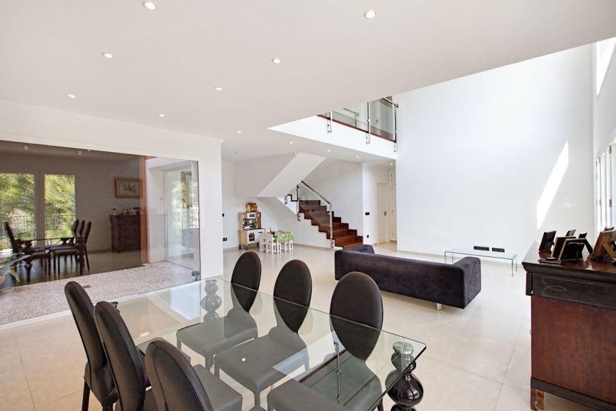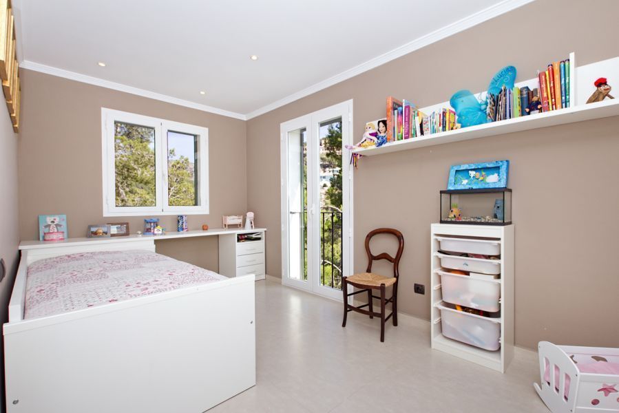 Вилла на Майорке прекрасно сочетает средиземноморский стиль экстерьера с современным дизайном интерьеров. Она предлагает 6 спален и 3 ванные комнаты, две из них ванные люкс. Кроме того, дом имеет просторную гостиную-столовую открытого плана с камином и полностью оборудованную актуальную кухню. Крытые и открытые террасы, а также солярий на крыше с красивым видом на горы приглашают насладиться чудесным климатом, в то время как бассейн в саду предлагает освежиться в жаркий летний день.