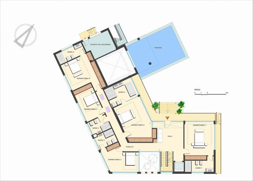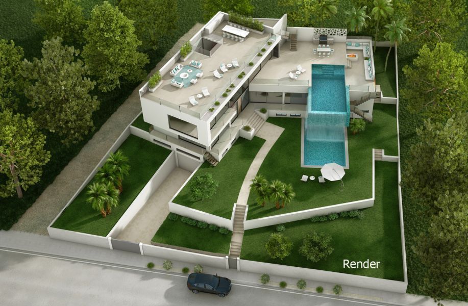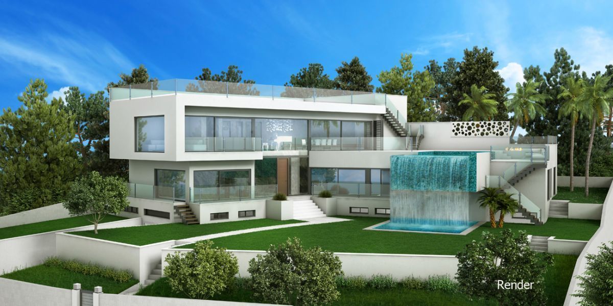 Очень светлая вилла на Майорке имеет современный дизайн и впечатляющие размеры, два этажа и большой подвал. Она предлагает 5 спален с собственными ванными комнатами и выходом на террасу, а также отдельный апартамент для гостей. Кроме того, в доме есть просторная гостиная-столовая с газовым камином и американской кухней, а в подвале находится зона спа с крытым бассейном, сауной, массажным кабинетом и тренажерным залом. Одна из больших террас, расположенных на верхнем этаже, имеет переливающийся бассейн с водопадом, а на крыше здания разместился огромный солярий.