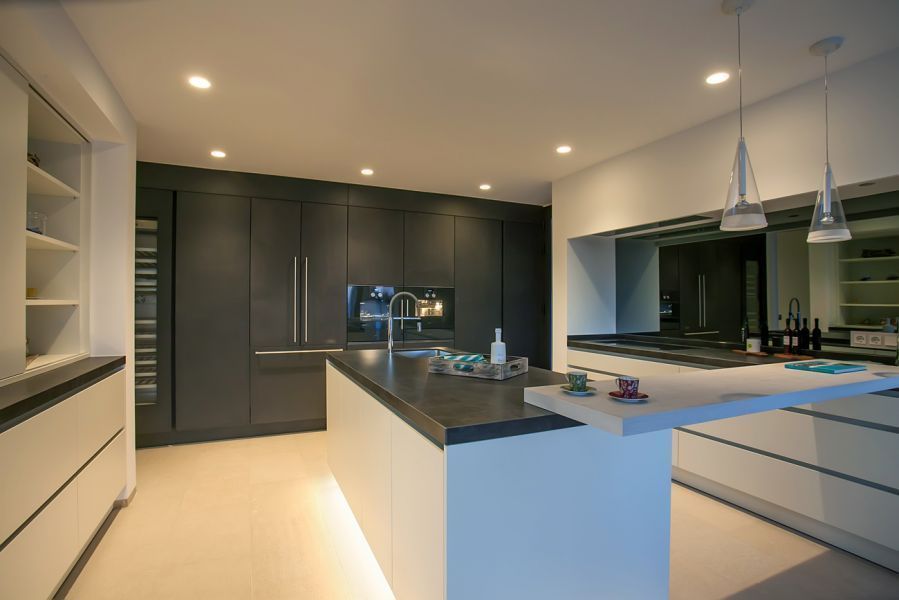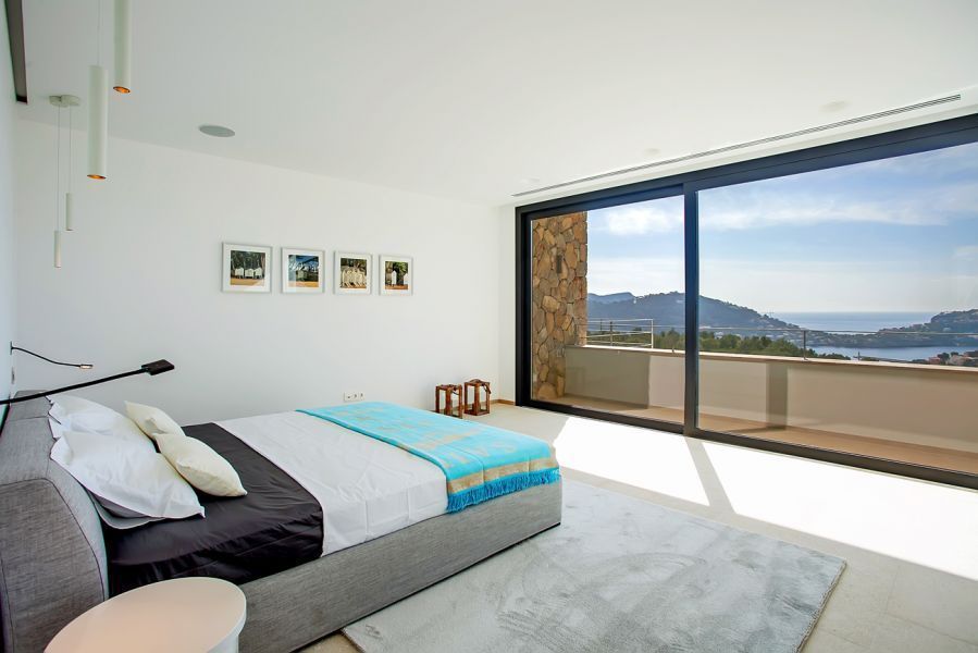 Потрясающая вилла с южной ориентацией предлагает 4 спальни с собственными ванными комнатами и туалет для приглашенных, включая апартамент для гостей с отдельным входом. Она имеет два этажа с подвалом и прекрасно сочетает в себе камень и сталь с большими окнами, что позволяет любоваться захватывающим видом. В доме также есть большая гостиная с обеденной зоной и кухней в американском стиле фирмы Биргит Мюллер. Террасы и переливающийся бассейн идеально подходят для того, чтобы насладиться прекрасным климатом острова.