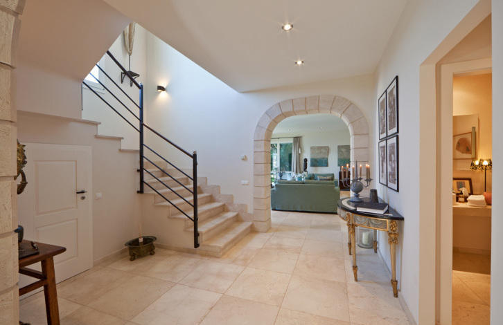 Дом современной постройки с архитектурными элементами традиционного средиземноморского стиля. Два этажа основного дома, а также гостевой дом. В общей сложности в распоряжении владельцев 4 спальни со смежными ванными комнатами. Просторная гостиная с камином, кухня, столовая. Из гостиной есть выход на одну из видовых террас с бассейном.