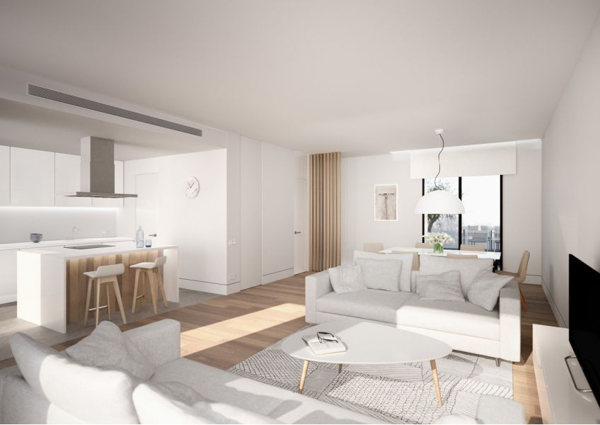 Современные апартаменты имеют 3 спальни, 3 ванные комнаты и гостевой санузел. Благодаря большим панорамным окнам, в просторную гостиную-столовую с американской кухней попадает много света. Также имеется огромная терраса площадью 100 м2 и собственный сад площадью около 50 м2.