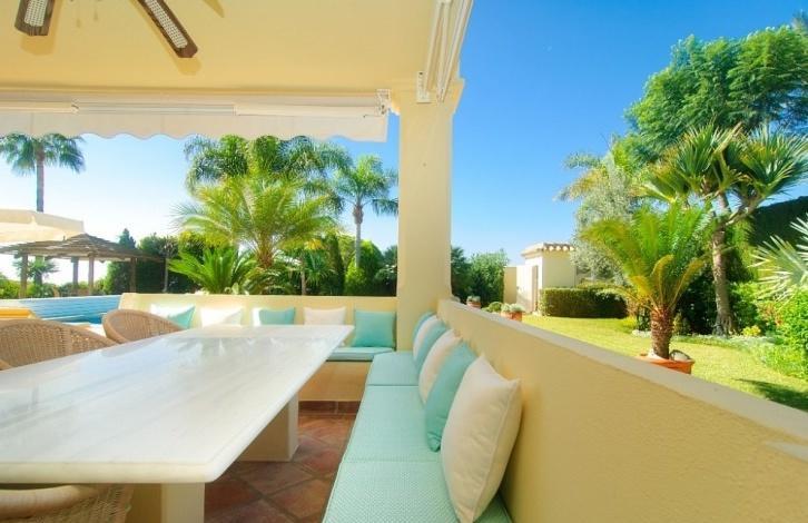 Красивая и уютная вилла в Эльвирии. Первый этаж: просторная гостиная, столовая с камином, комната с ТВ (возможно 4-я спальня), полностью оборудованная кухня, гостевой туалет, гостевая спальня. Прямой доступ к крытой и открытой террасам, бассейну и саду. Гараж на одну машину. Верхний этаж: главная спальня, гостевая спальня. Большой зеленый сад и бассейн с подогревом. Рядом коммерческий центр ELVIRIA всего в 10 минутах езды от Marbella и Puerto Banus.