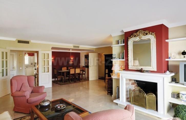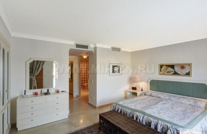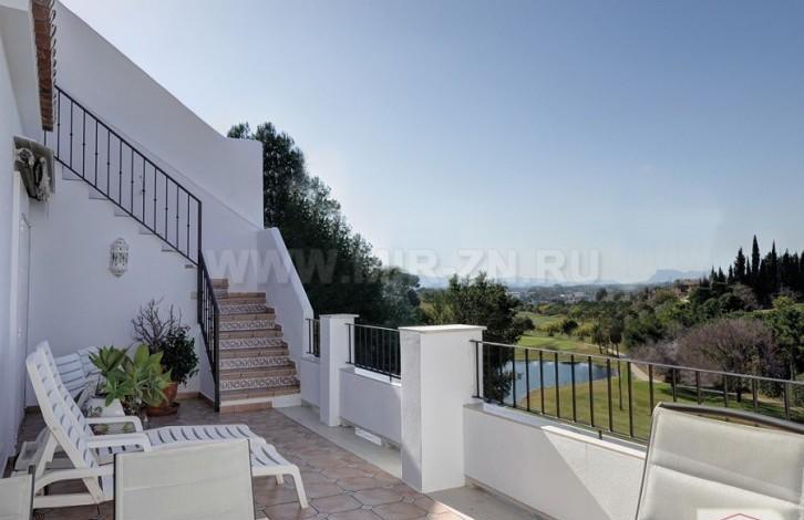 Ориентирован на юго-запад, оборудован в соответствии с высокими стандартами. Предлагает светлую гостиную со стильным камином, предоставляя прямой доступ к частично крытой террасе. С террасы открывается захватывающий вид на море, Гибралтар и африканское побережье и вечнозеленое гольф-поле и озеро.