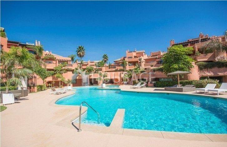 Великолепный три спальни, на южную сторону пентхаус в первой линии пляжа сообщества Ла Морера, с пышными тропическими садами с прямым выходом на пляж, большой открытый бассейн, крытый бассейн с подогревом, сауна и тренажерный зал. Это сказочное сообщество находится всего в десяти минутах ходьбы от Пуэрто Банус и Марбельи. В квартире есть: большой открытой планировки гостиная и столовая с французскими дверями, ведущими на огромную террасу с красивым видом на море, полностью оборудованная кухня, хозяйская спальня, две гостевые апартаменты и гостевой туалет. Другие функции включают в себя системы охранной сигнализации, горячая и холодная кондиционер, мраморные полы, полы с подогревом, спутниковое ТВ и электрические жалюзи. Есть также два парковочных места в гараже и кладовая.