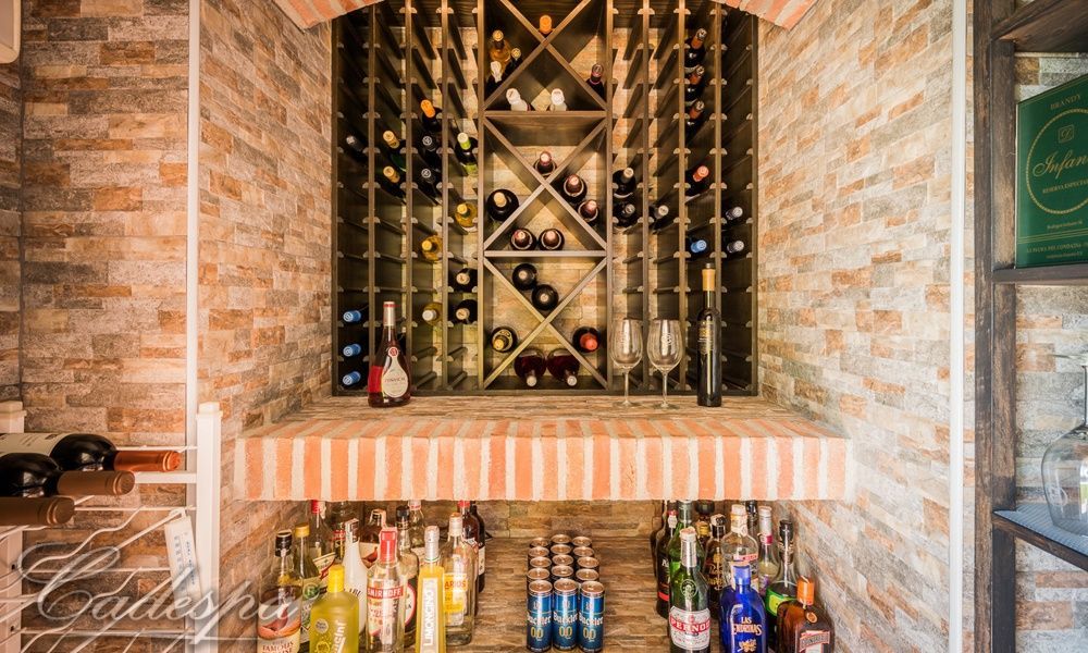 Холл, гостиная с камином, столовая, экипированная кухня, 4 спальни, 3 ванны, винный погреб с контролем температуры, техническая комната, гараж на две автомашины.