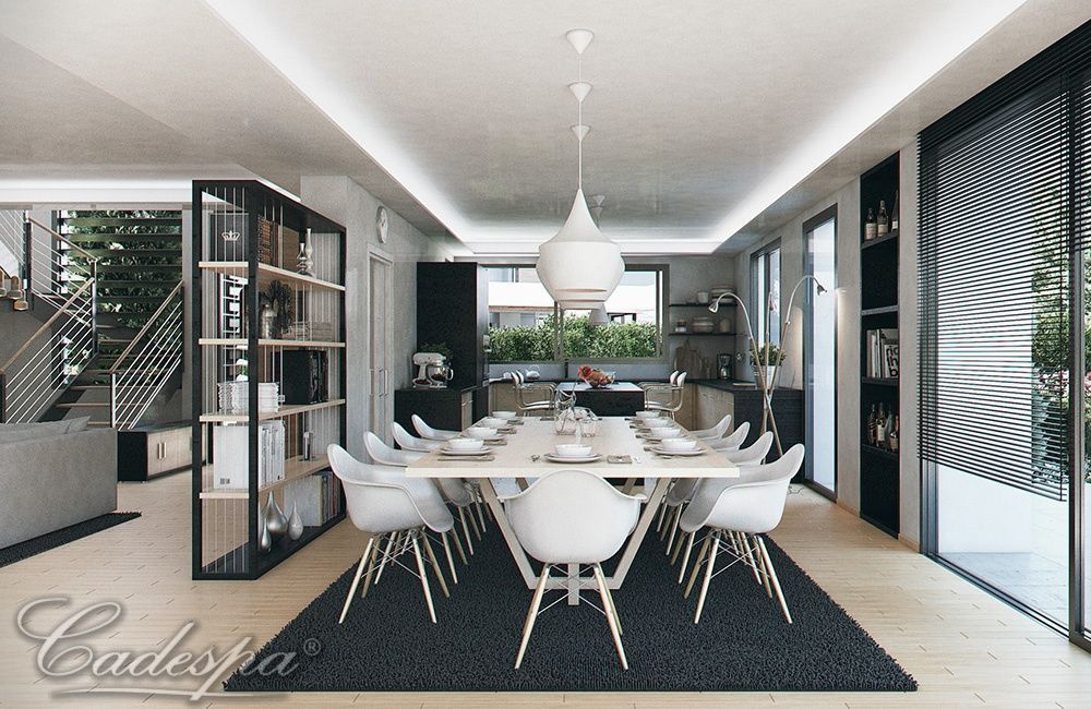 4 спальни, 4 ванны, салон с камином и выходом на террасу, столовая, экипированная кухня, техническая комната.
