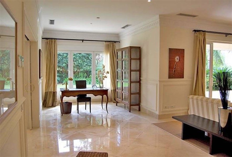 Вилла состоит из 6 спален с ванными комнатами, кухни с островком, винного погреба, тренажерного зала, гаража на 3 машины, зоны BBQ. Она оборудована кондиционером, теплыми полами, сигнализацией и автоматическими жалюзи.